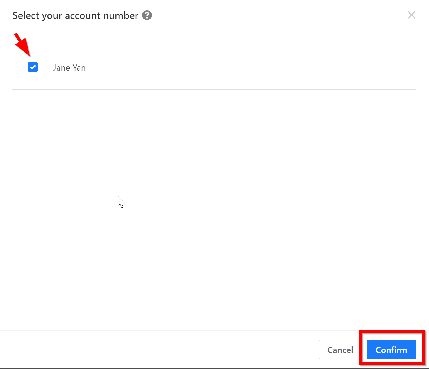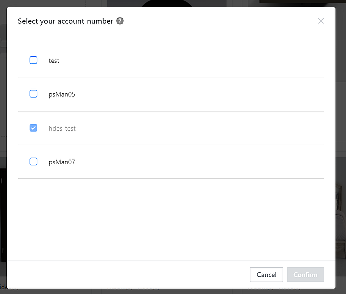 3. Choose one of your Sub-accounts to share the item. Tick the role name and Confirm it.