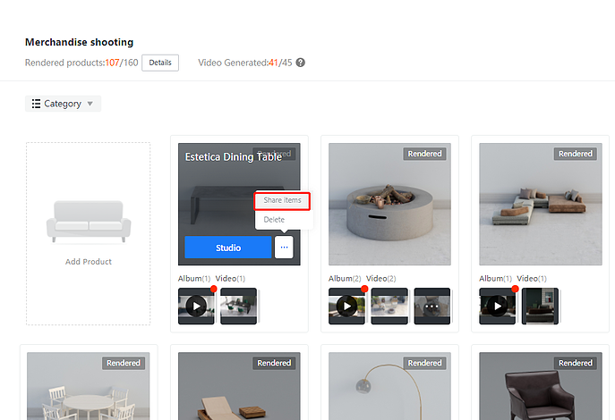 #「New function 1」The accounts who have the permission of the photo studio can share their photo studio products with each other for the shooting.