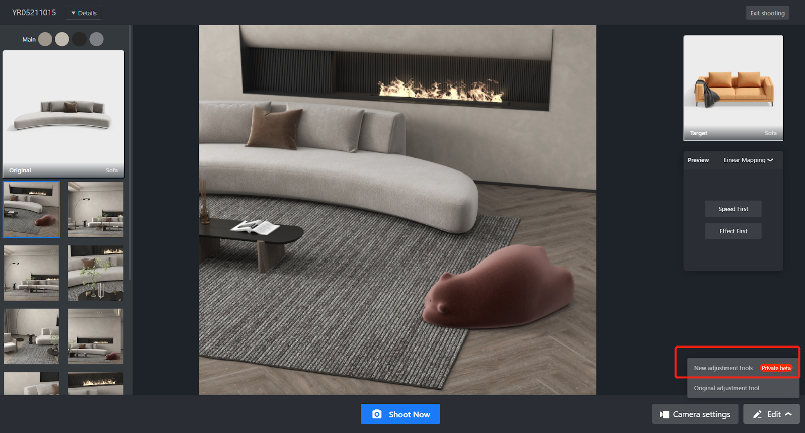 When you are back to the interface for studio editing, you can make other adjustments. After that, click the “Album lens settings” on the top bar to go back to the photo shooting page. Then, click Shoot Now, and the photos that you shoot will have all the lighting effects that you’ve adjusted for the studio.