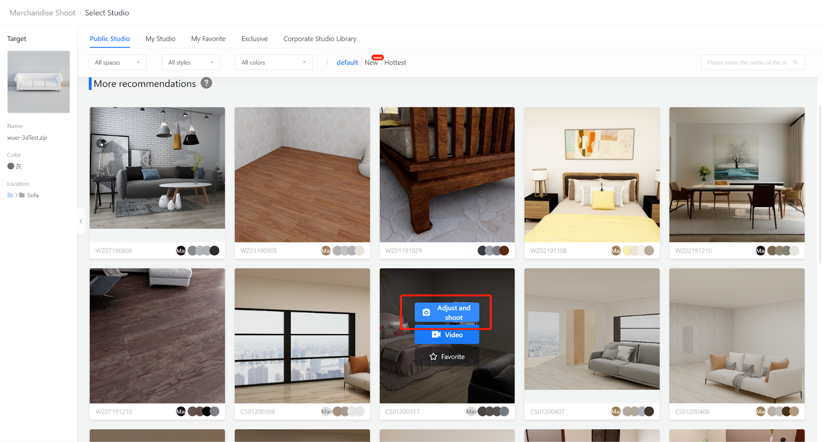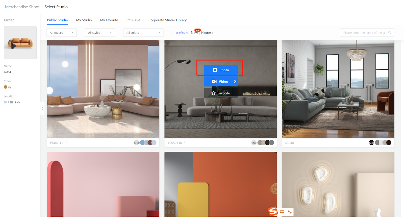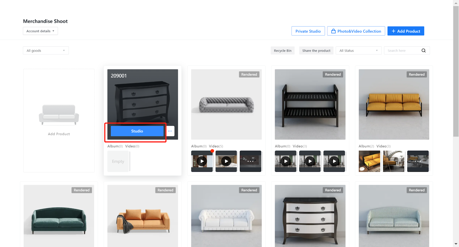 2. Hover your cursor over the preview of the product you want to shoot photos for. Then, click the Studio button.