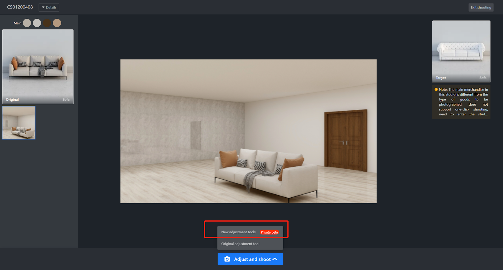 If you click “Adjust and shoot”, click on the “Adjust and shoot” button at the bottom. Then, choose the “New adjustment tools” option.