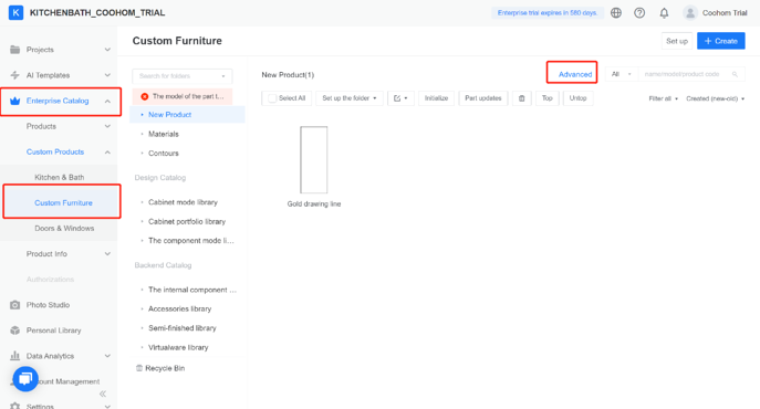 Go to Merchant Platform > Enterprise Catalog > Custom Furniture > Advanced