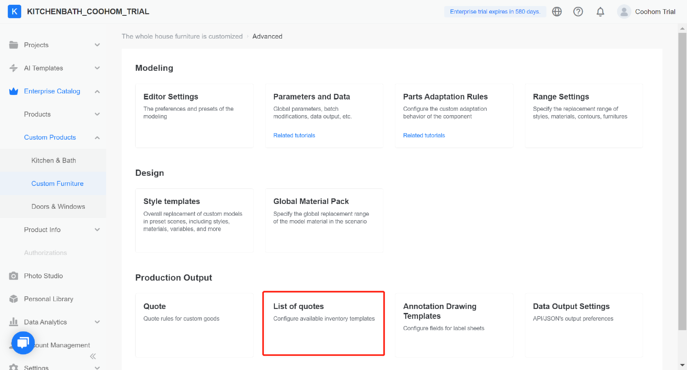 Introduction: Different enterprise users may have different quotation systems, and thus need different quotation templates. Therefore, Coohom helps enterprises to customize and configurate your own templates.