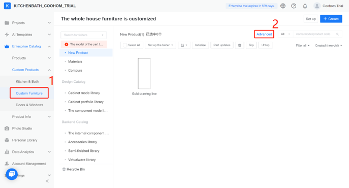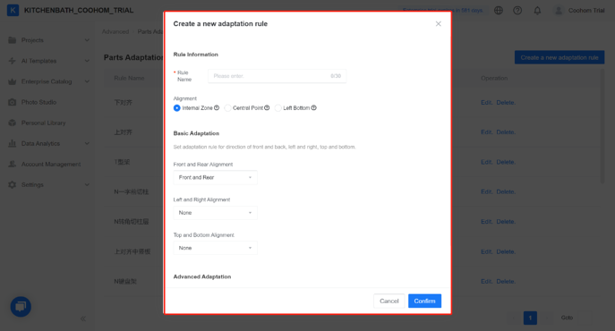 Enterprise Catalog > Custom Products > Kitchen & Bath / Custom Furniture > Advanced > Parts Adapation Rules