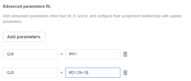 3. Add advanced parameter association. The user can define the adaptation requirements for other parameters except for #W, #D, #H during component adaptation.