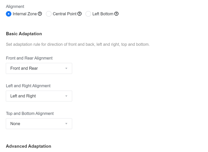 4. AlignmentThe first method (the most common): align with the inner space as the reference, which means that the alignment and adaptation will be performed according to the found inner space area during the adaptation processWhen selecting a single direction, the offset and the main parameter input box of that direction will be activated