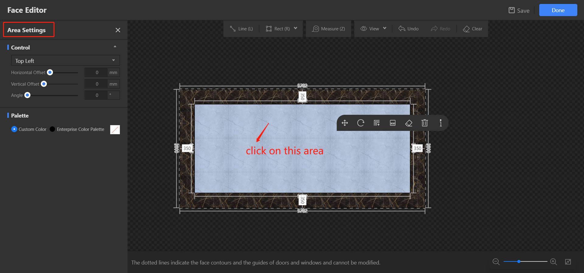 Also, each area can be edited separately. Select one area, you can see Area Settings on the left. There, you can control the start point of paving, adjust the angle of materials.