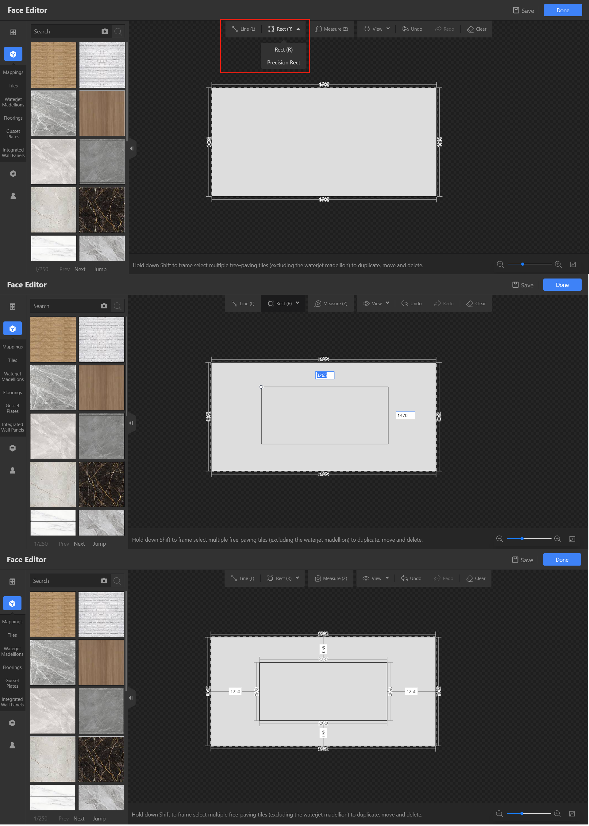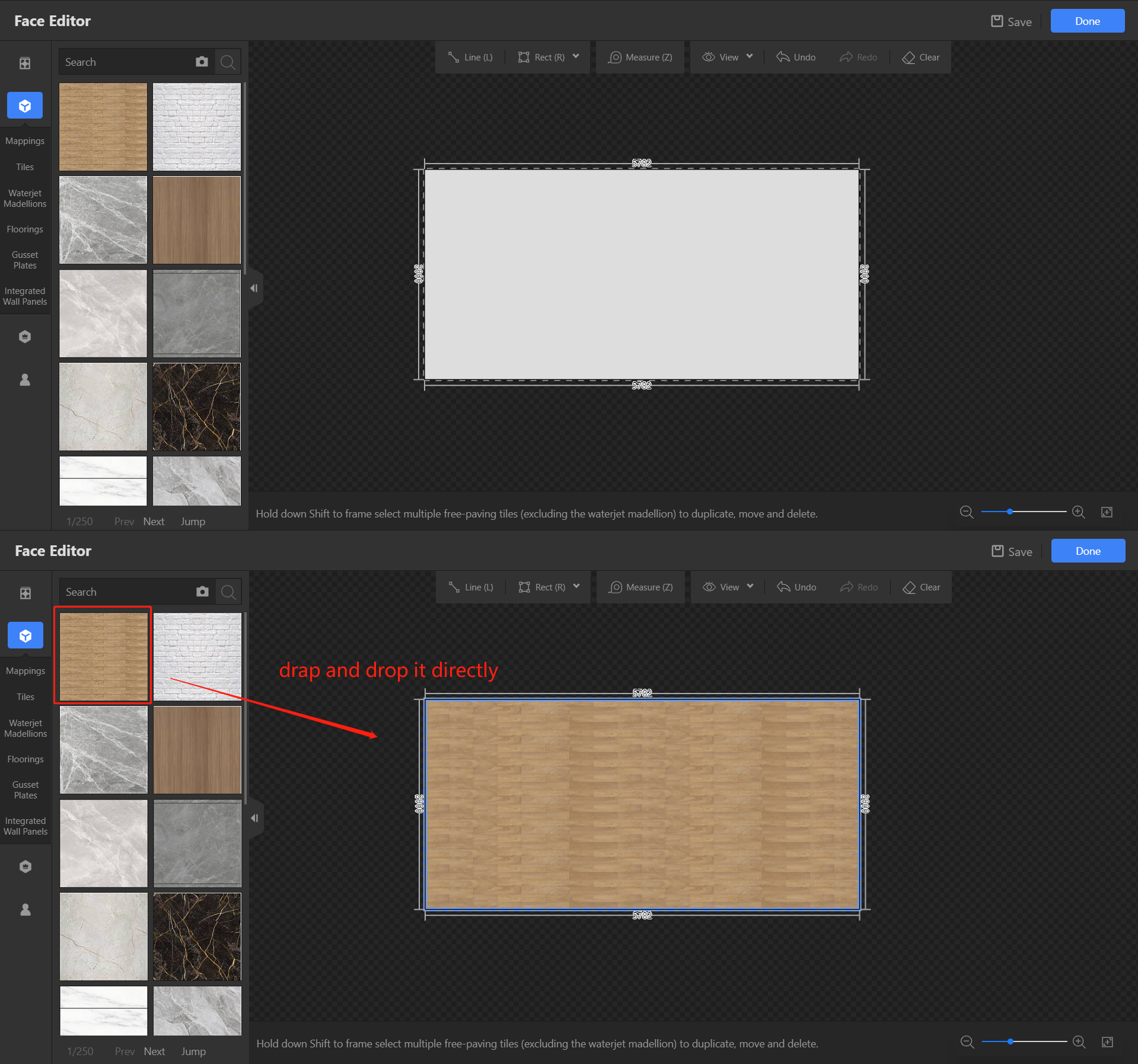 Also, we can map different finishes from Public Library, Enterprise Library, or My Account - Uploads. Just drag and drop the finishes to the area. The whole area will be filled with the same finishes. (Read More)