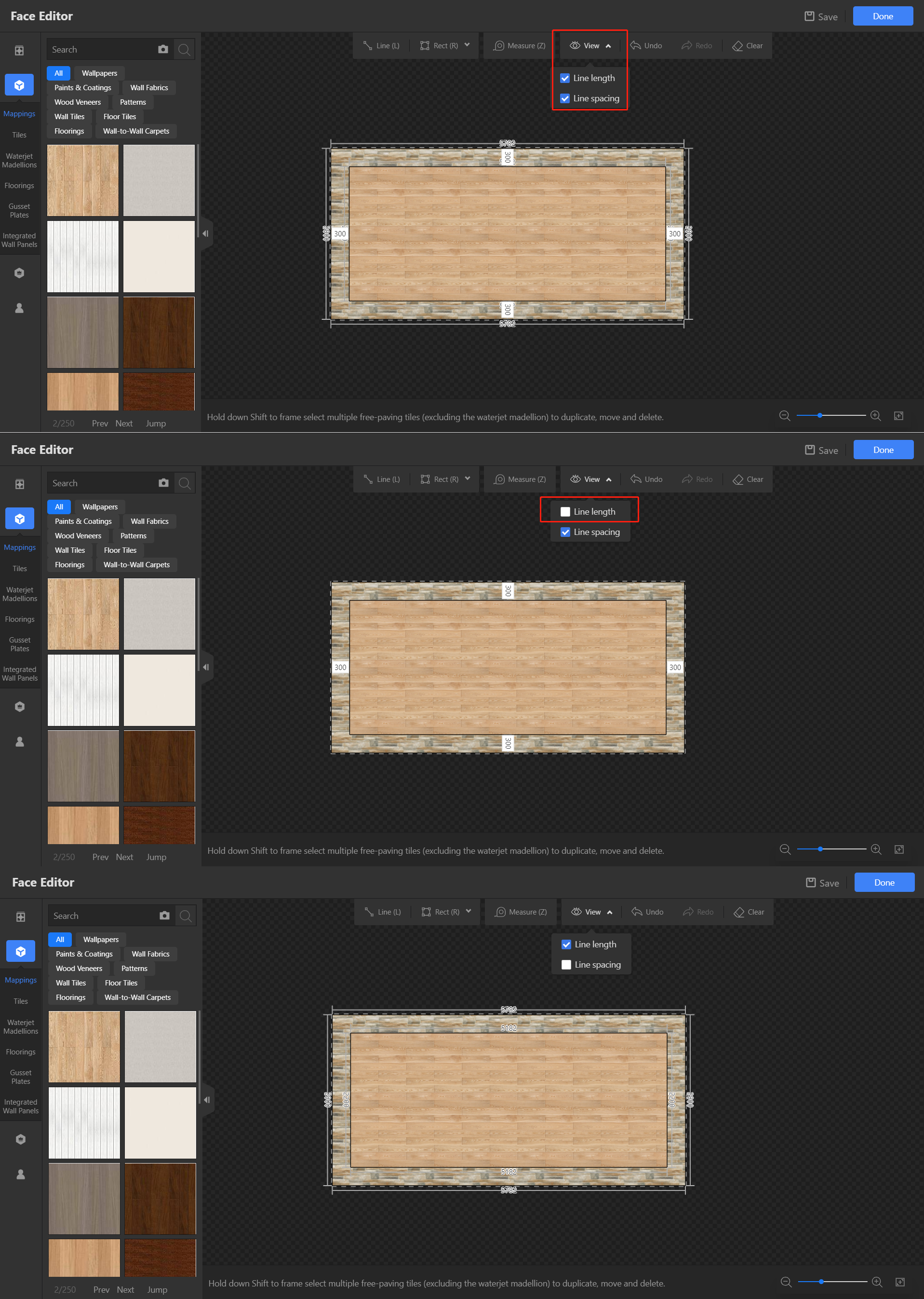 View option is to select Line Length or Line Spacing shown or hidden in Face Editor.