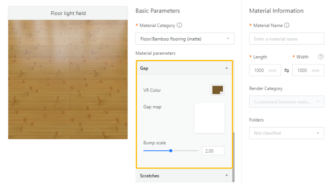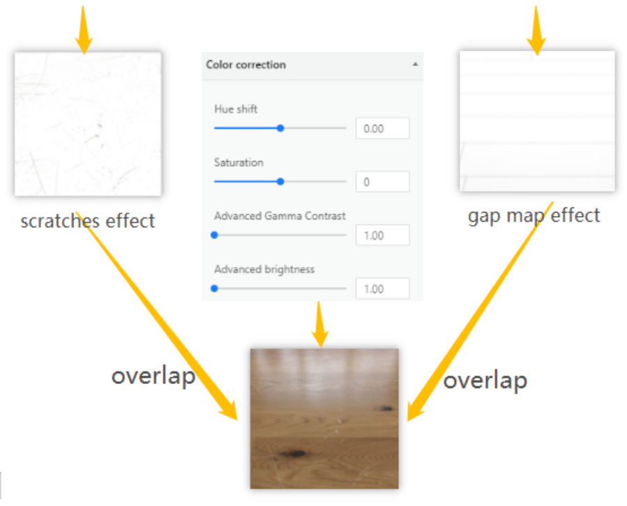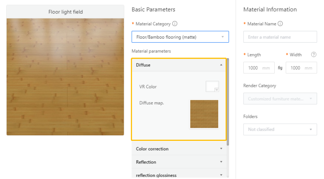 1. Adjust diffuse map and add VR color.When using default map, adjust VR color will change the floor color.(Size not exceed 5M, resolution not exceed 5000pixels)