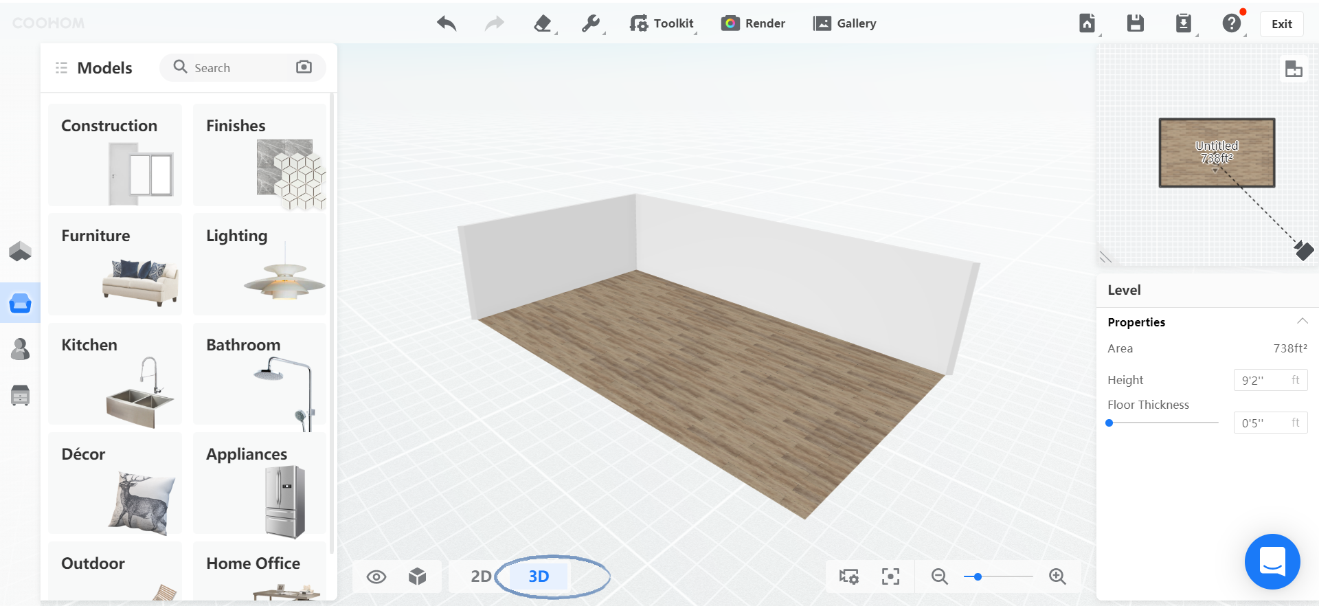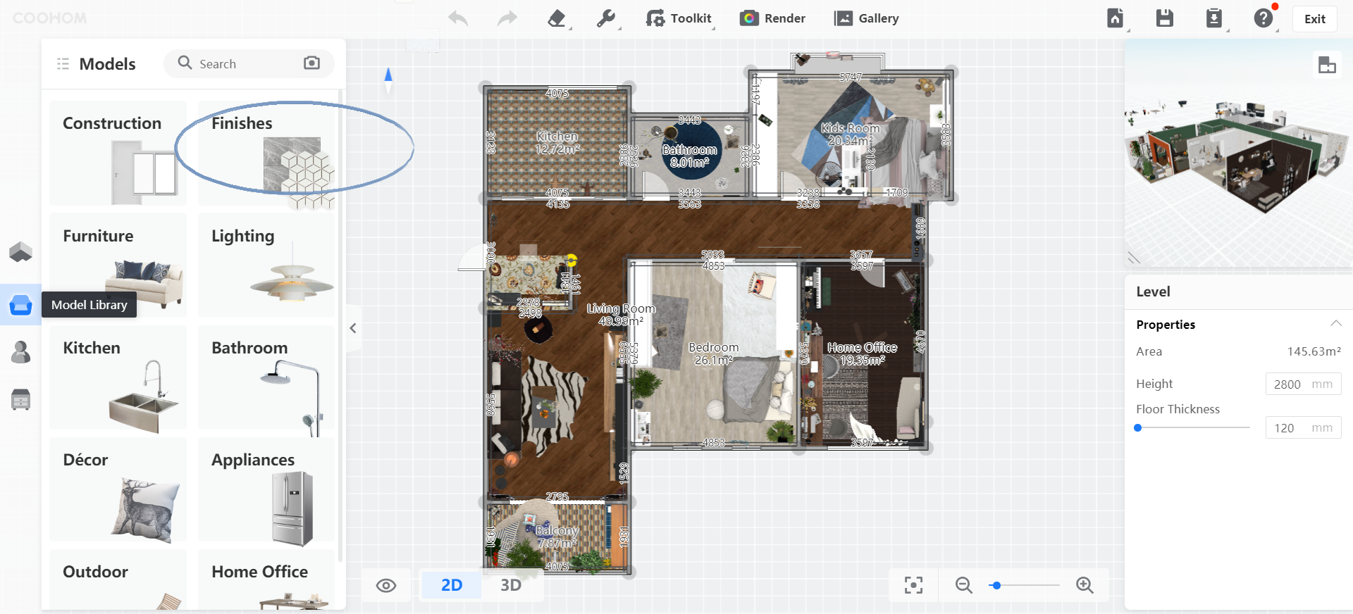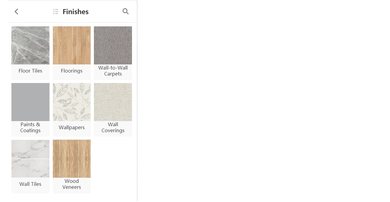 1. Click Model Library > Finishes in the left panel of our 3D floor planner.