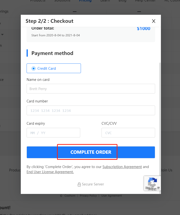 When purchased successfully, your order information will be displayed on a new web page and a PDF invoice will be sent to your login email address.