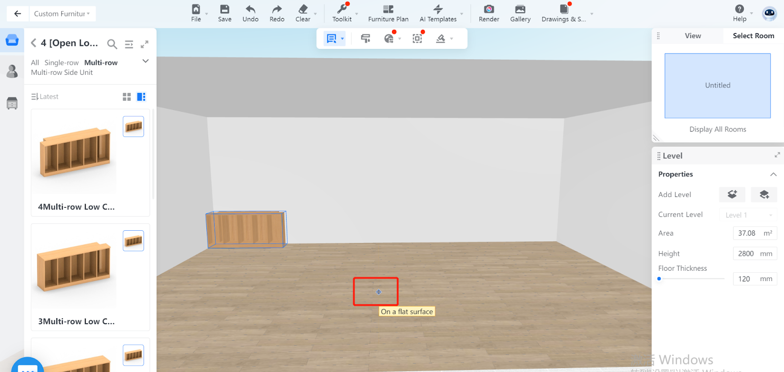 In some cases, you can even adjust the height difference, particularly when you need to place hanging furniture or components. Here, the height difference parameter is set to the default value 0.