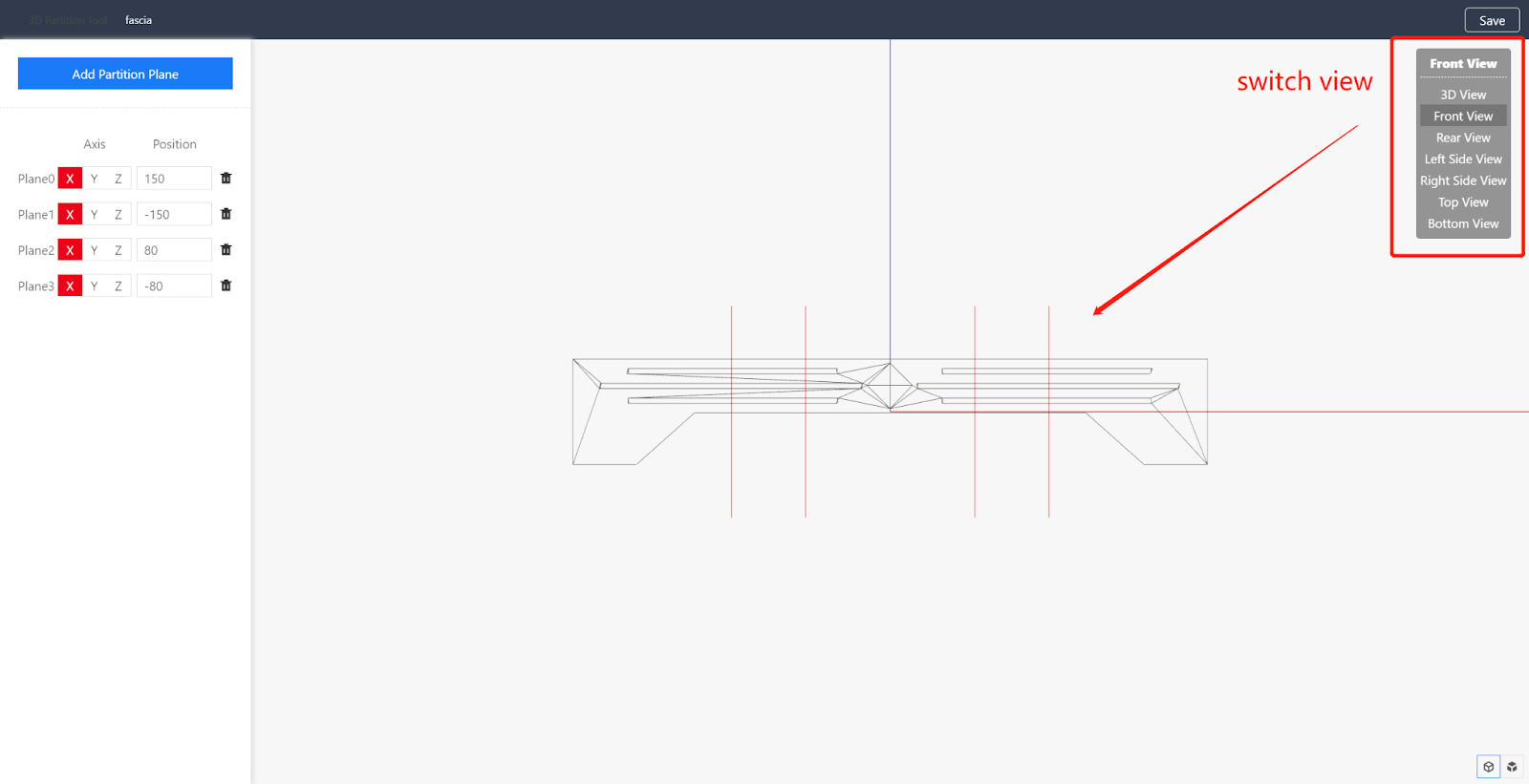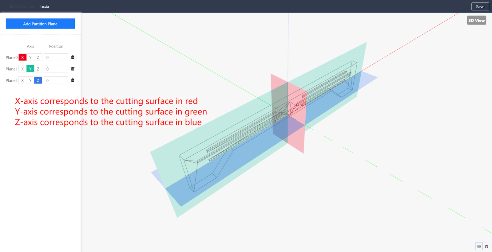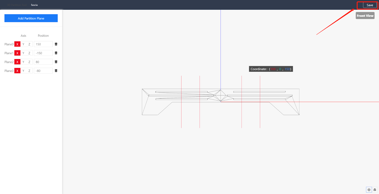 5. Add a partition plane and move it to the appropriate position. The cutting plane is generated perpendicular to the direction axis. For example, if the X axis is selected, it means that the cutting surface is generated perpendicular to the X axis. (Up to 9 cutting planes can be added.)