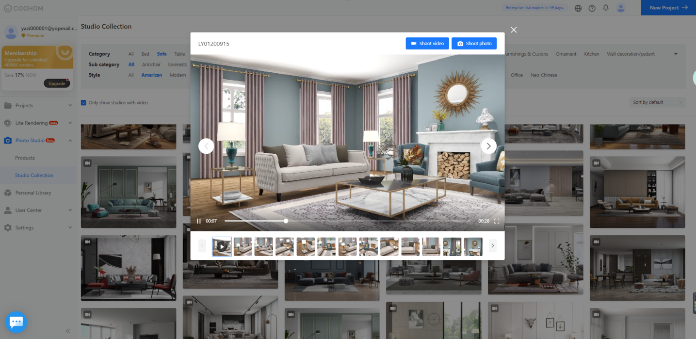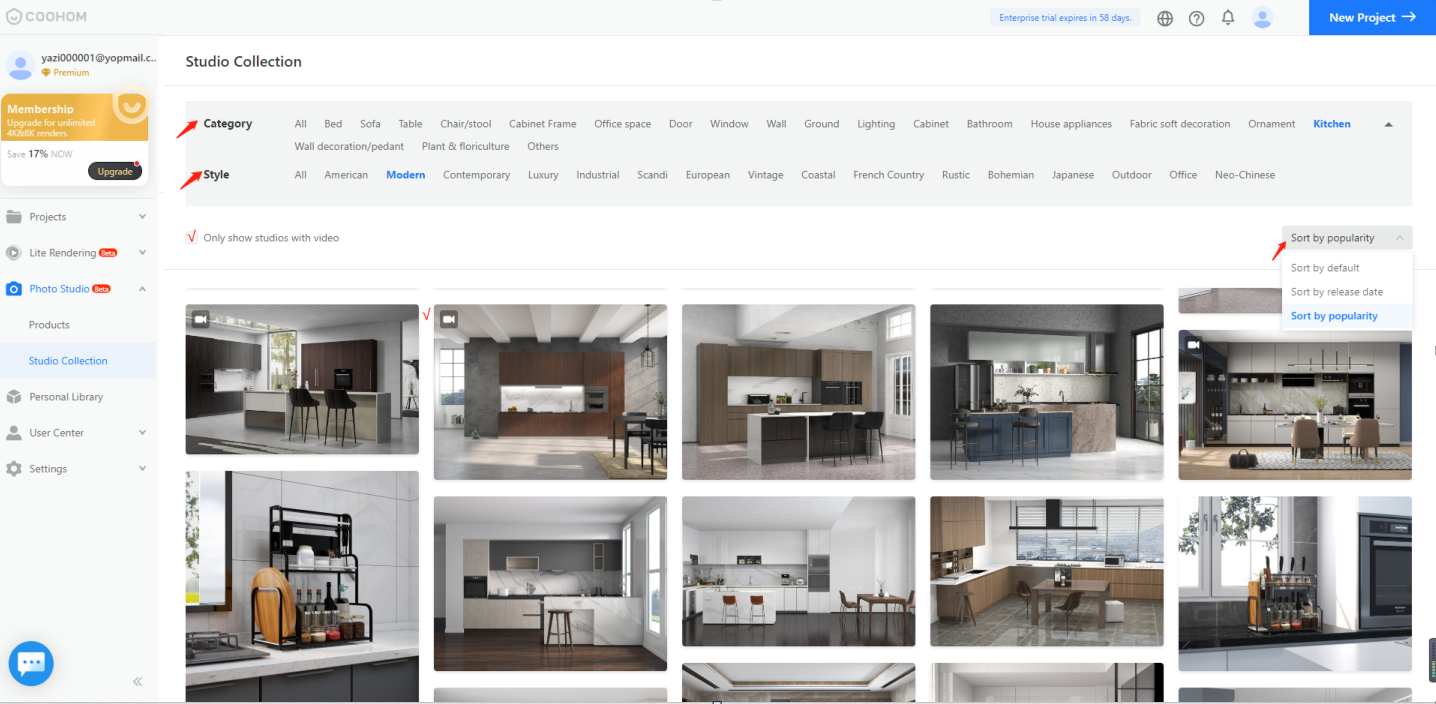 1. You can filter studios from Public Studio based on style and space. You can also filter them by tags such as default, New and Hottest. The camera icon that appears means the studio comes with the video shooting feature.