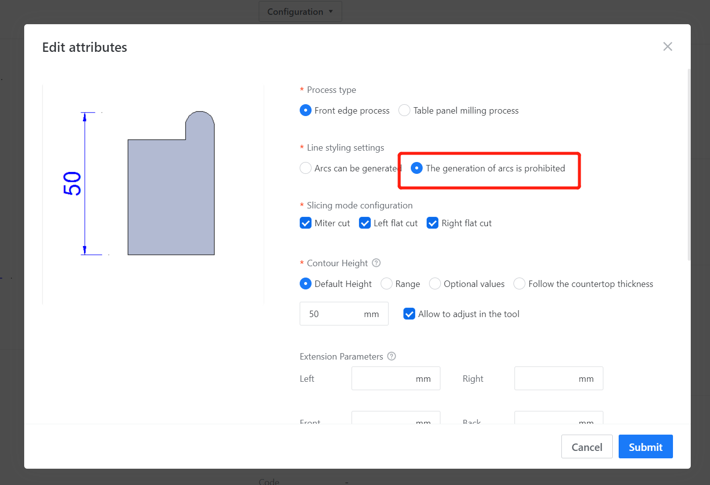 Some customers have processing restrictions on rounded corners for their top/bottom/edge lines, which can be configured using this function.