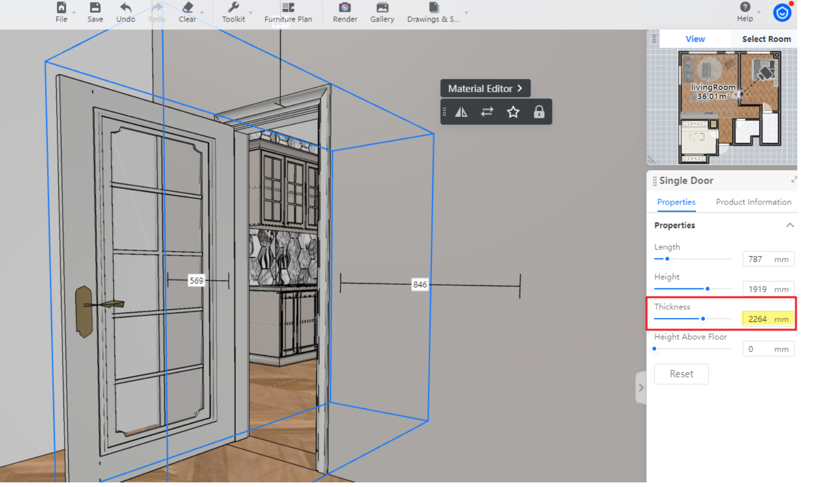 Last but not least, please don't forget to adjust Thickness to about 2200 MM until it goes just a little beyond the wall.