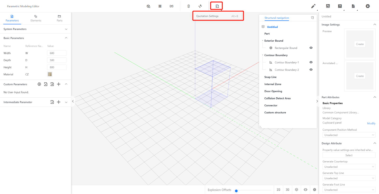 Example: The solid wood panel from XX merchant is priced at 500 per square meter, and the painted panel is priced at 300 per square meter. This example uses the panel in component mode. Whether it’s a product in Interim Parts or a component library, the panel quotation setting is the same.