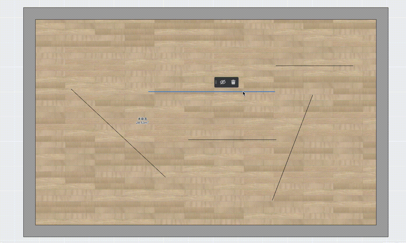 Activate any edge within the canvas (including reference lines, floor plan component segments, or model edges) and move the mouse to offset and draw a reference line.