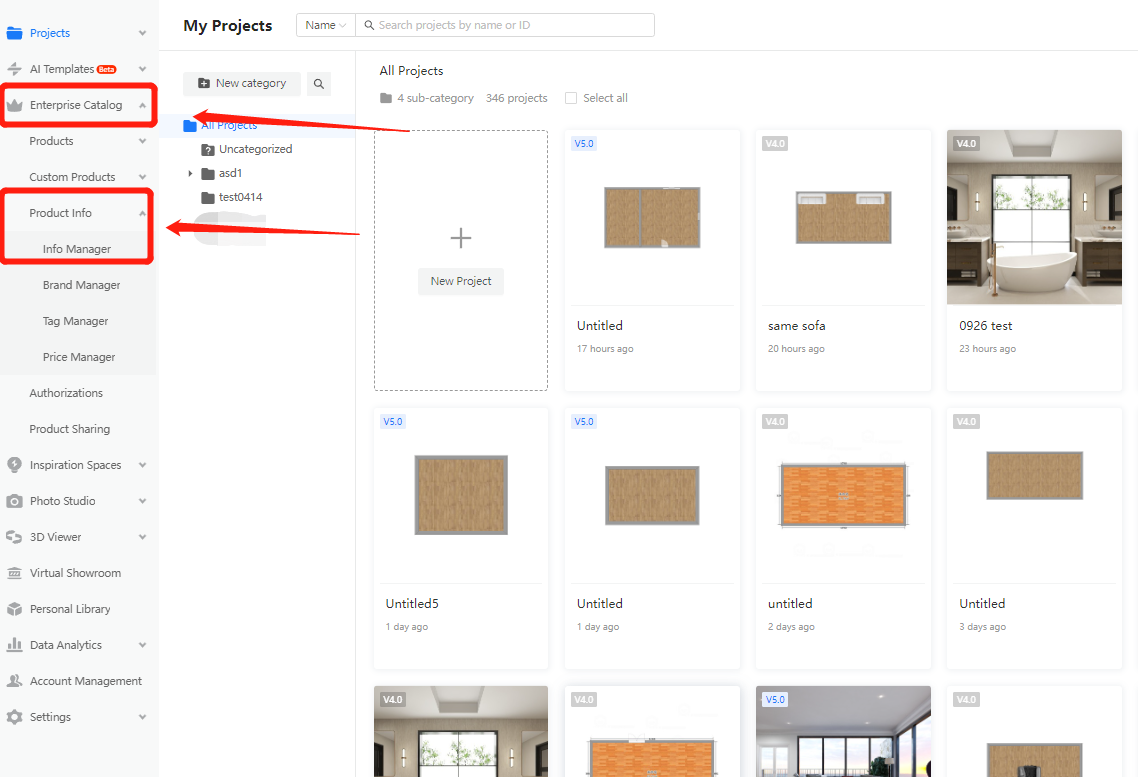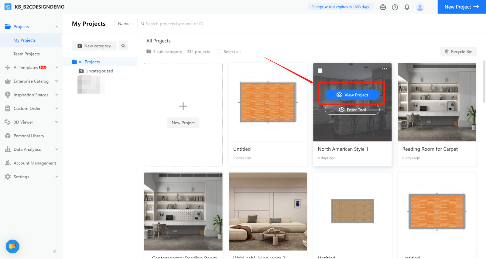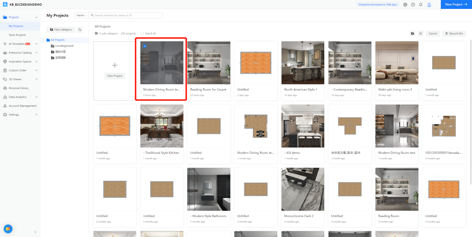 1. Go to the Enterprise backend, choose 【Projects】-【All Projects】, and select the desired project that needs to be configured.