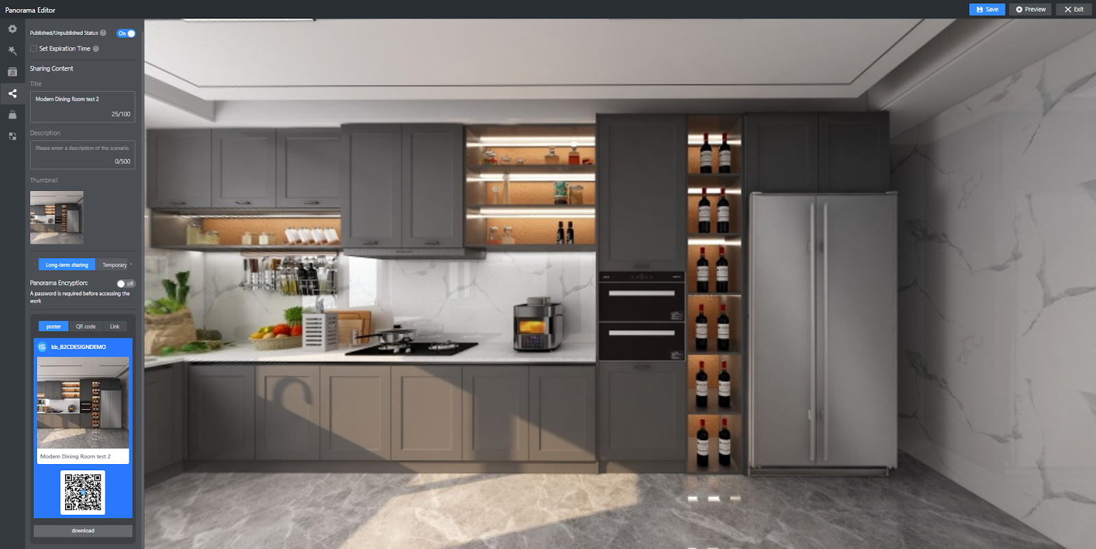 In the past, designers might have refrained from sharing renderings/panoramic images with clients due to concerns about unauthorized use. However, with Coohom panorama you can address this concern by setting an expiration date. After the specified time has passed, clients will no longer be able to view the panoramic image. This feature ensures that your designs remain secure and accessible only for the intended duration.