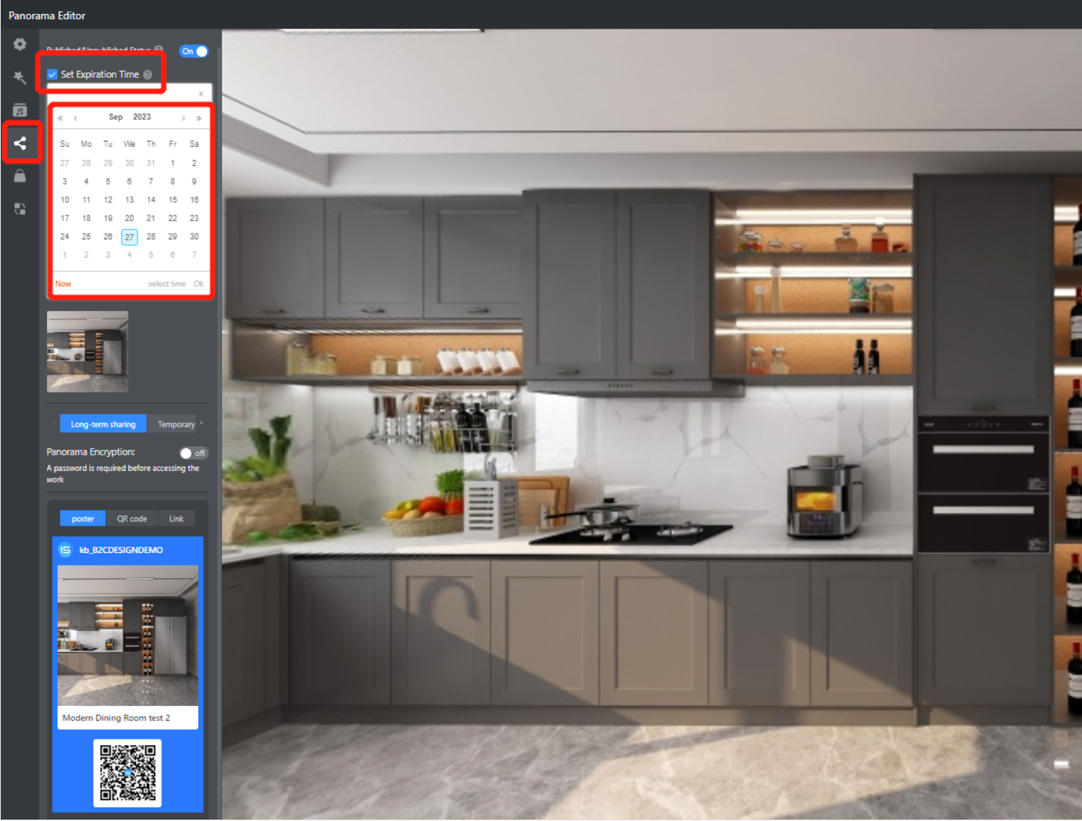 3. After selecting 【Set Expiration Time】, you can directly choose the desired expiration time on the calendar. If you uncheck "Set Expiration Date", access to the panoramic image will not be restricted by the expiration setting.
