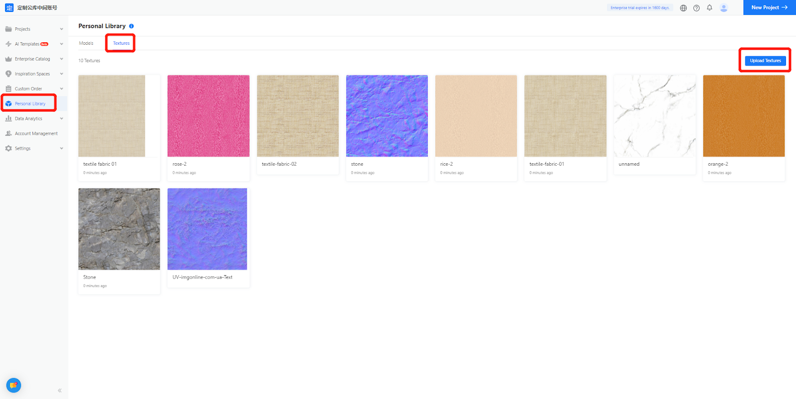 1. Upload entry: Personal Library - Textures -Upload Textures