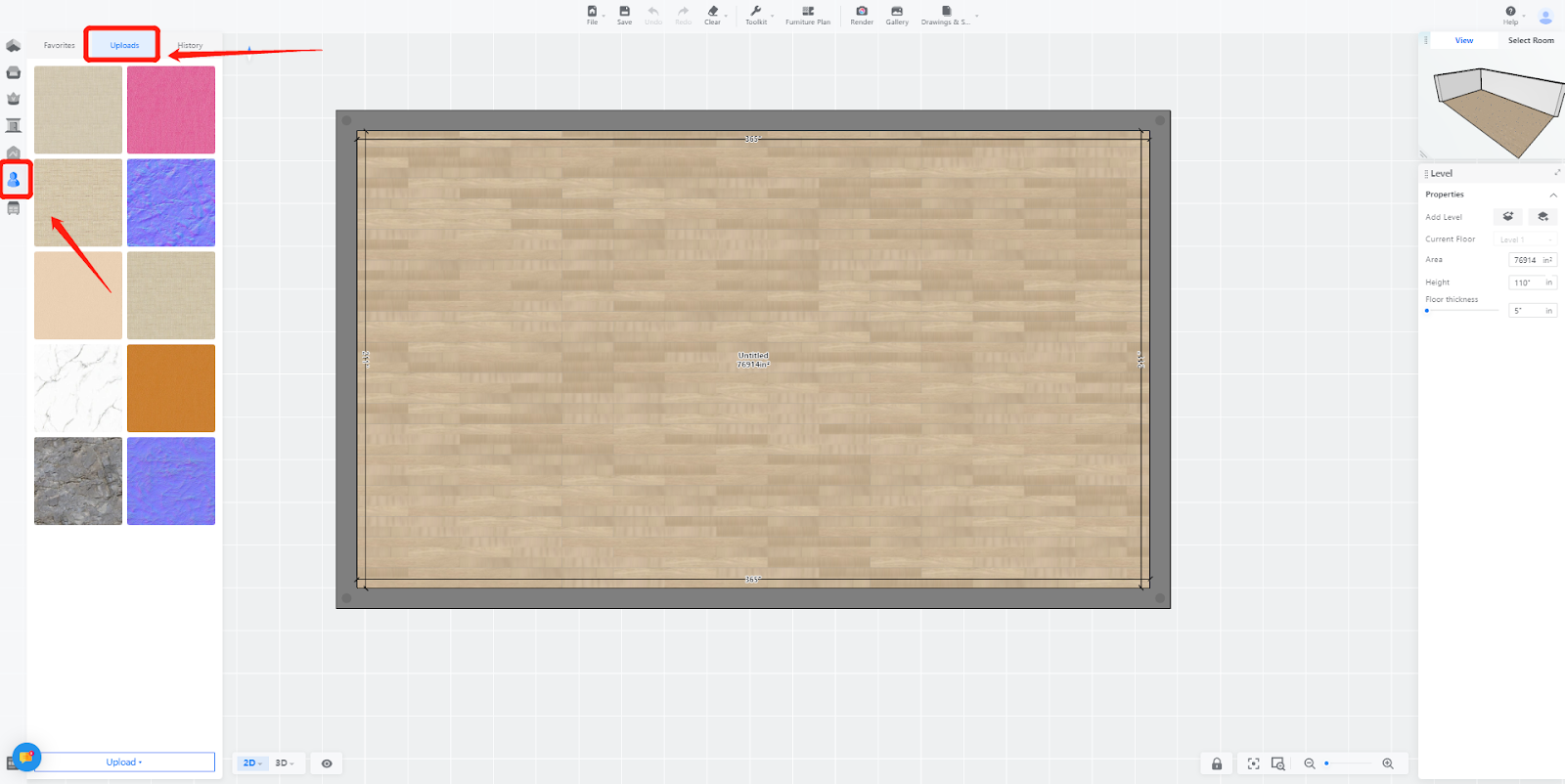We fully support Enterprise and individual users to upload construction materials on Coohom and use them seamlessly in the design tools.
