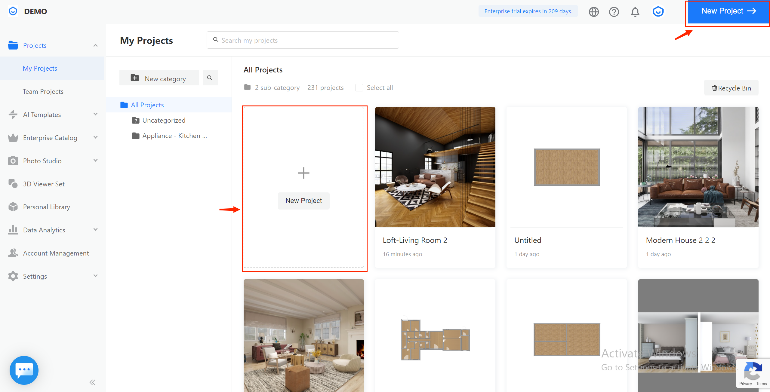 The first box on the "My Projects" page will also encourage the users to design more conveniently.