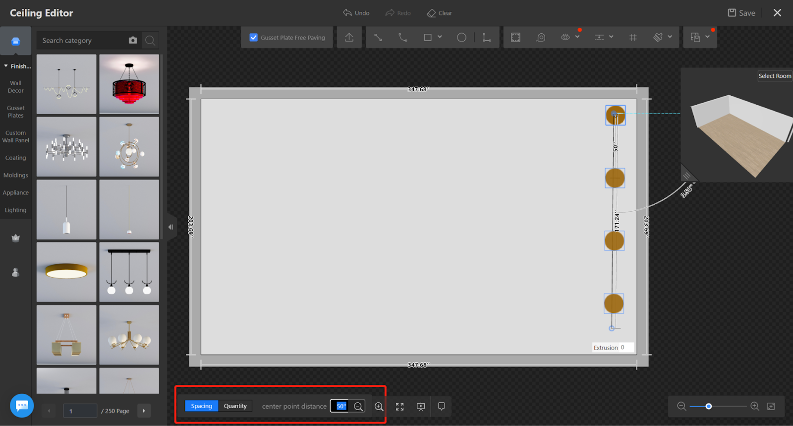 1. Spacing mode: Input the distance between center points in the bottom toolbar.