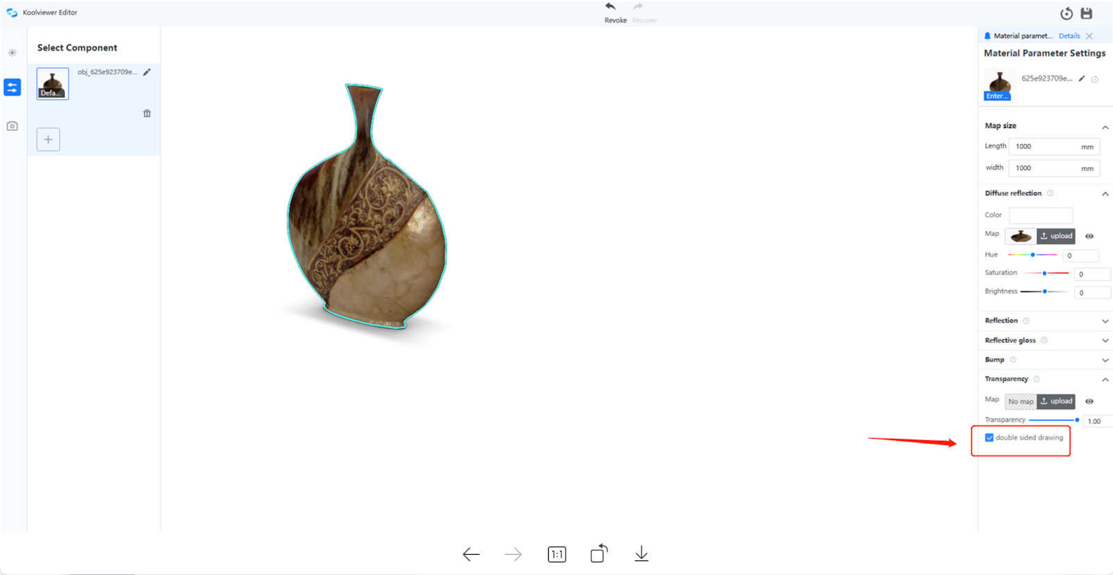Add the 'double-sided drawing' feature to solve the issue of double-sided transparent materials, which will prevent the backside from becoming fully transparent.