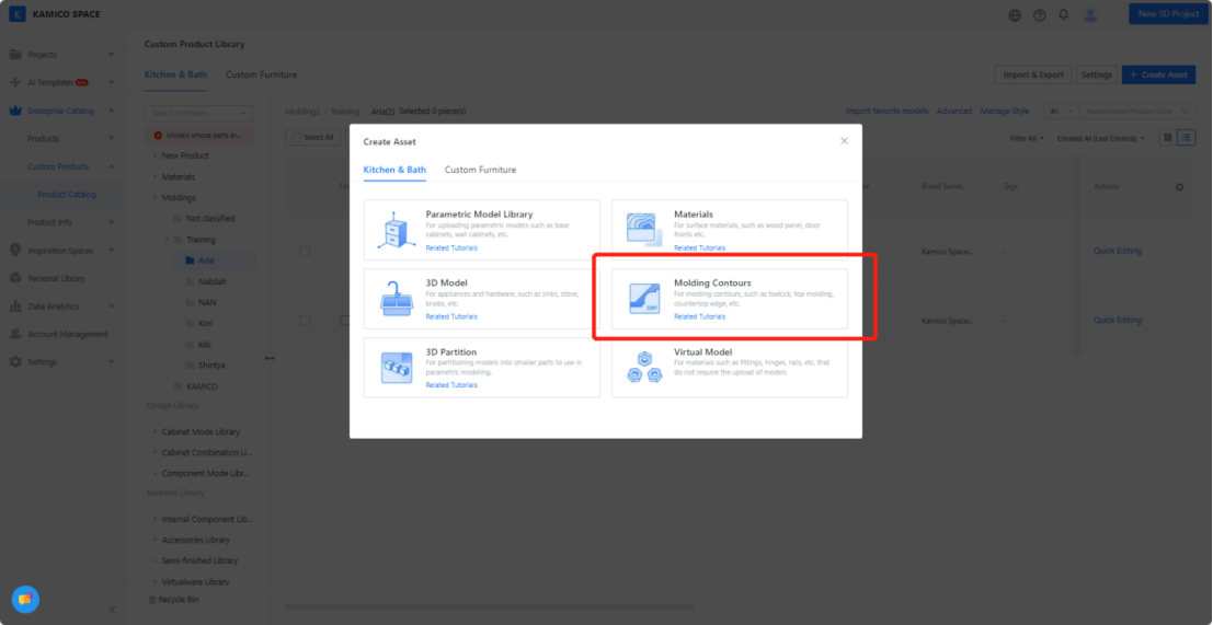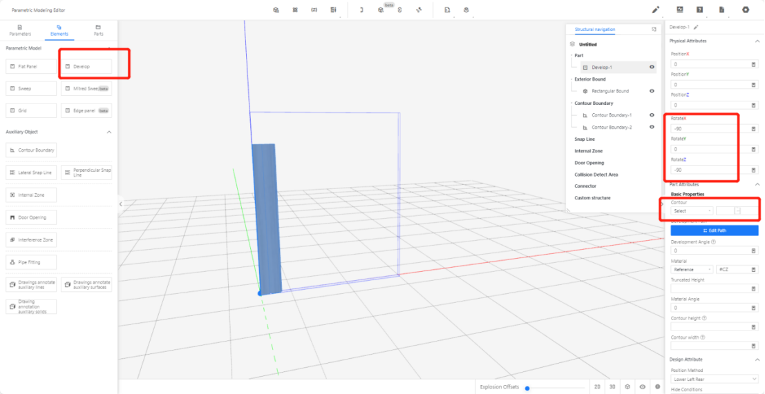 Choose develop from elements and modify basic properties,select a molding from folder and set RotateX to -90 and Rotate Z to -90.