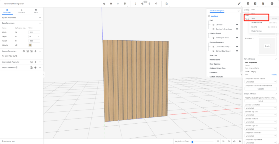 Custom Furniture —Create Asset—Parametric Model Library—New—Internal Parts—Door