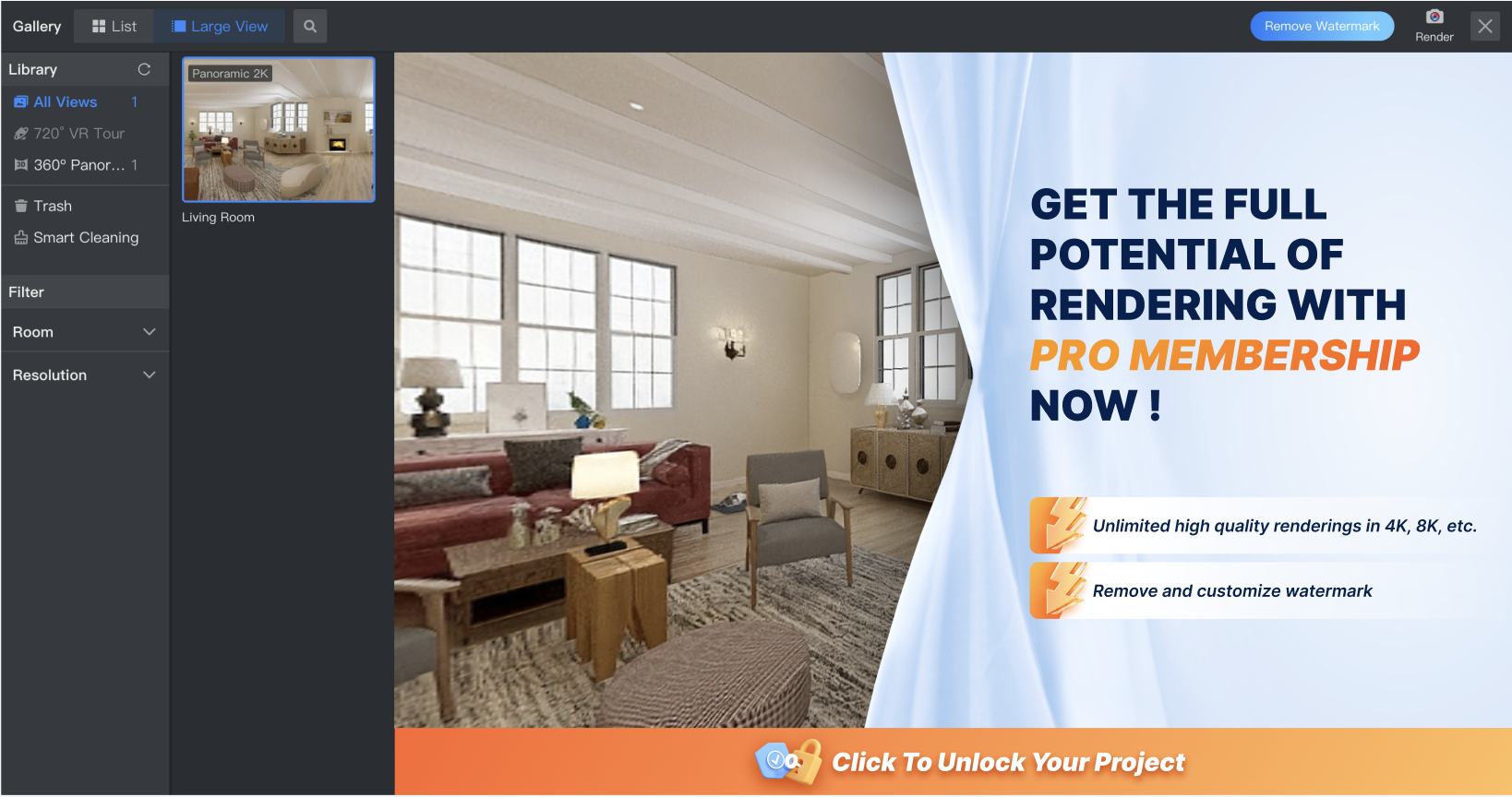 Basic accounts have limitation to view Images and videos and the Coohom watermark could be only removed if you are Pro accounts. We understand your passion and would like to give you huge offer to express your kind support towards Coohom. Please contact our Live Chat support to get special discount code for first-time Pro subscription.