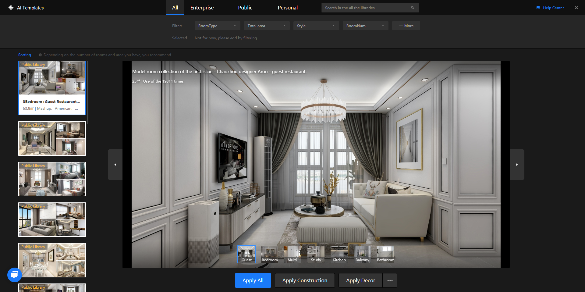 1. Upgraded algorithm capacitywith better effect, the lower failure rate2. The more flexible applicationsupports to apply soft decoration, construction, single room, and whole-house separately3. Perfect supporting capabilitiessupports templates evaluation, data dashboard