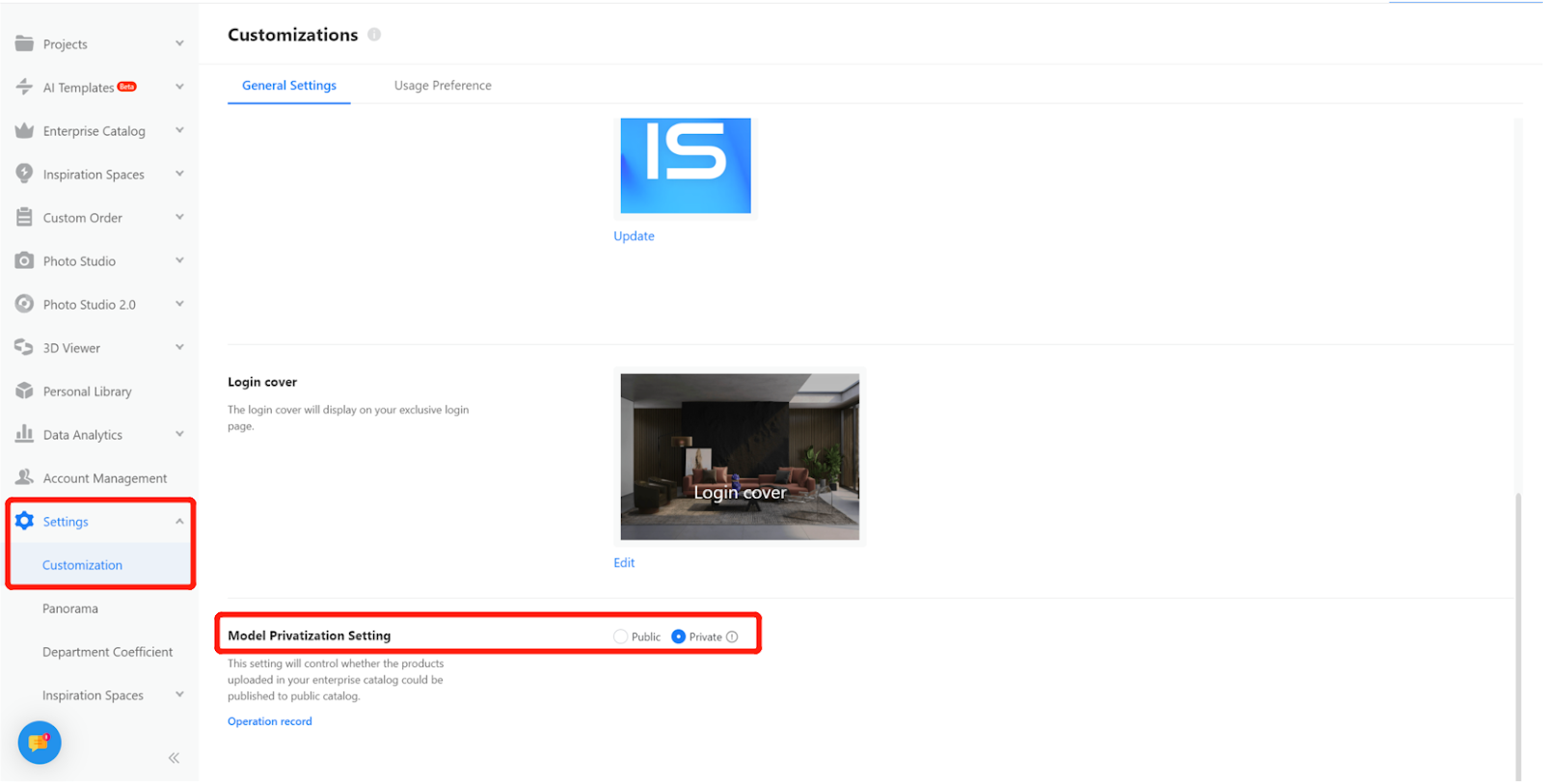 Step 3: In 【Model Privatization Setting】 select 【Public】or 【Private】