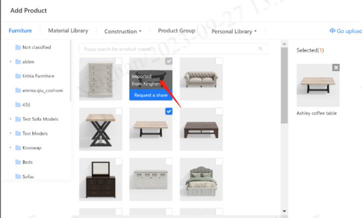 When users enter the Photo Studio to select models, the name of the source party for each model should be updated in real time based on their current account name.