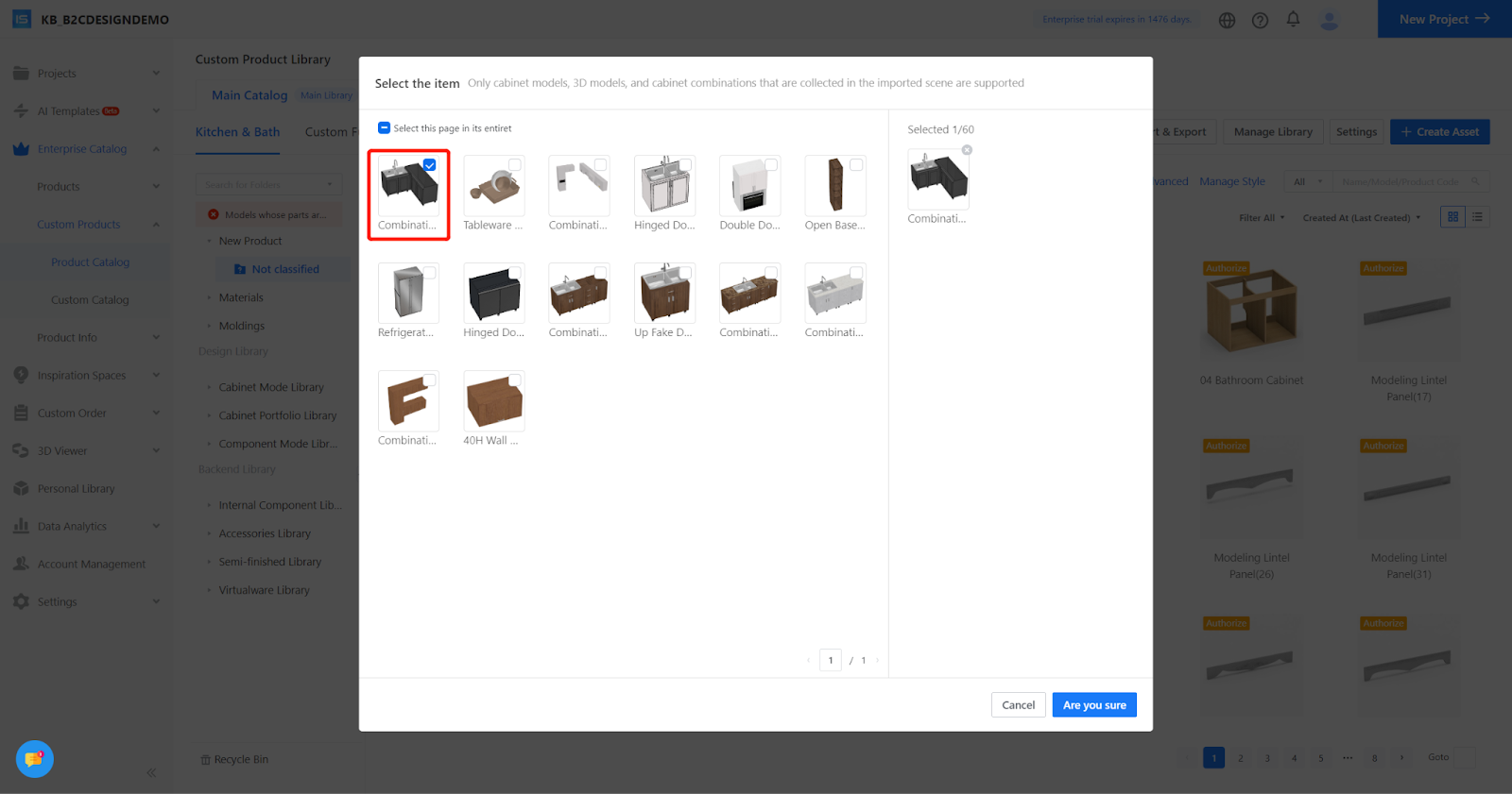 Step 1: Users can freely combine custom models from the enterprise catalog within the design tool and add them to their favorites.