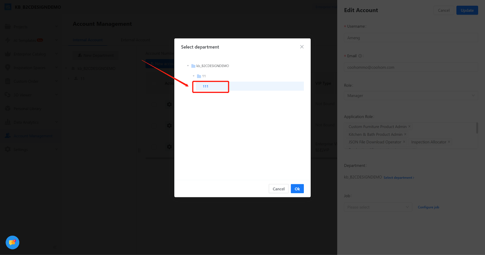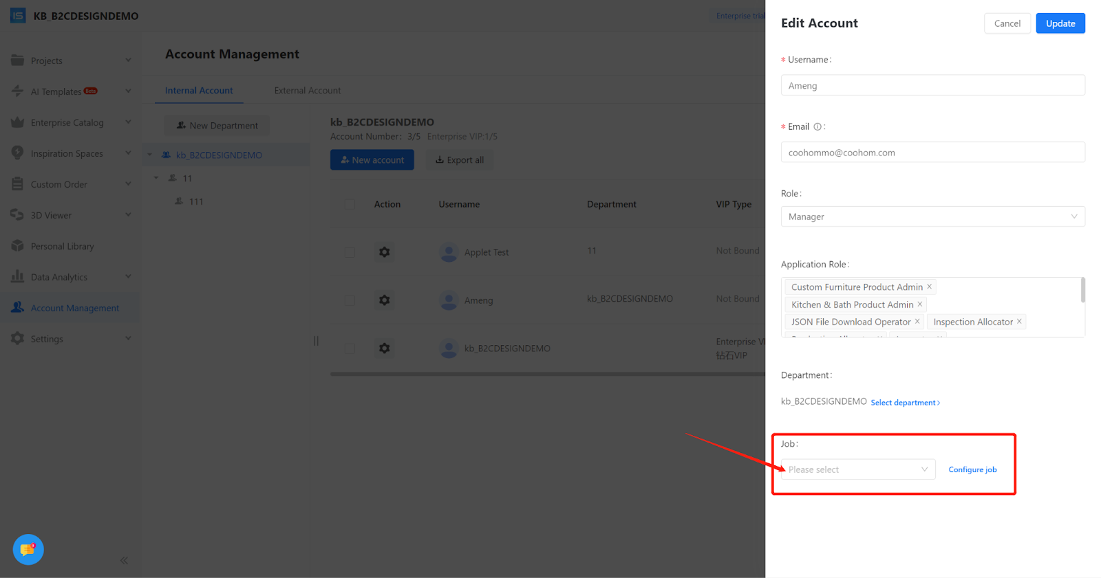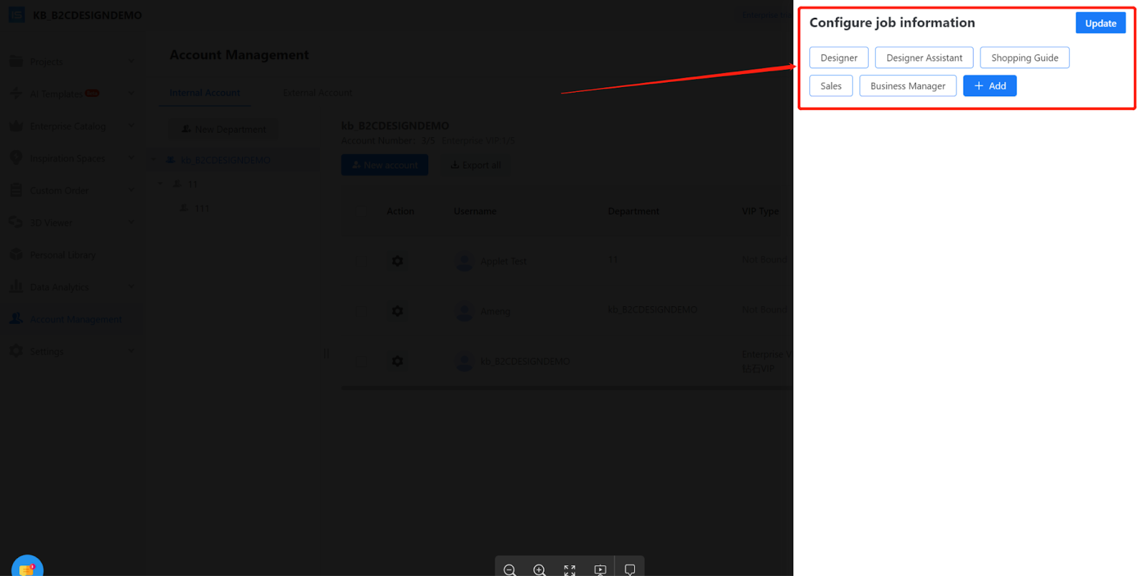 Admin and manager accounts are allowed to set and modify the departments and jobs of sub-accounts, making it more convenient for the enterprise to manage its sub-accounts uniformly.