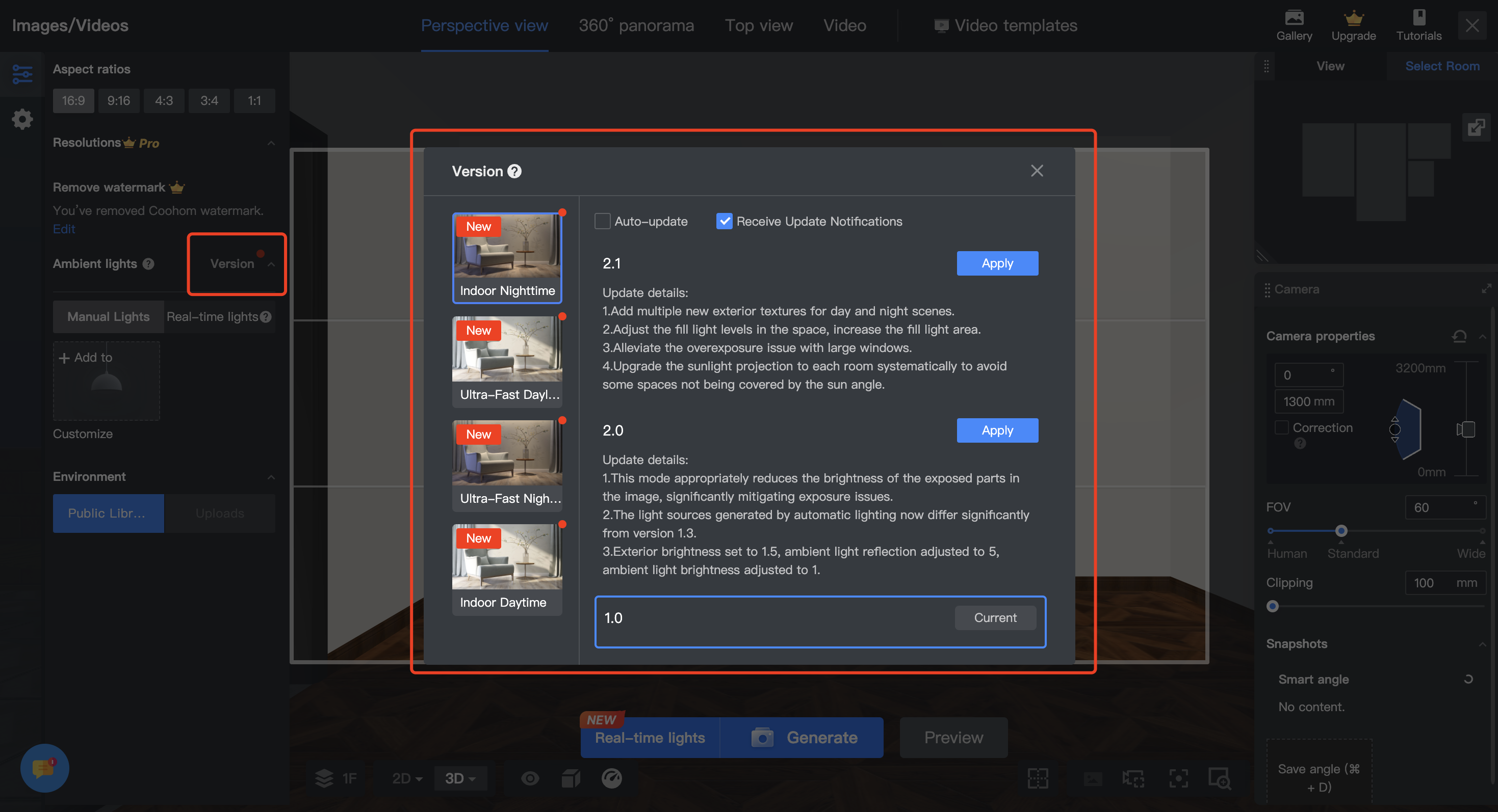 Upgrading the lighting version can enhance the rendering quality and the specific optimization effects can be referenced in the update details for each lighting template.