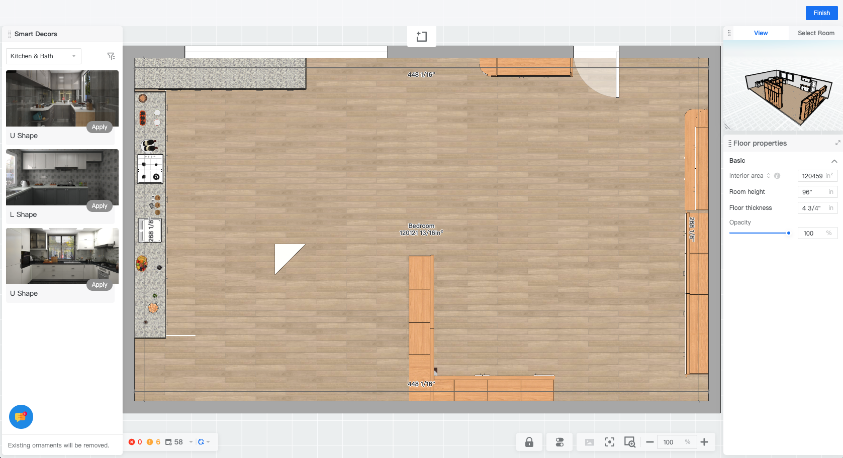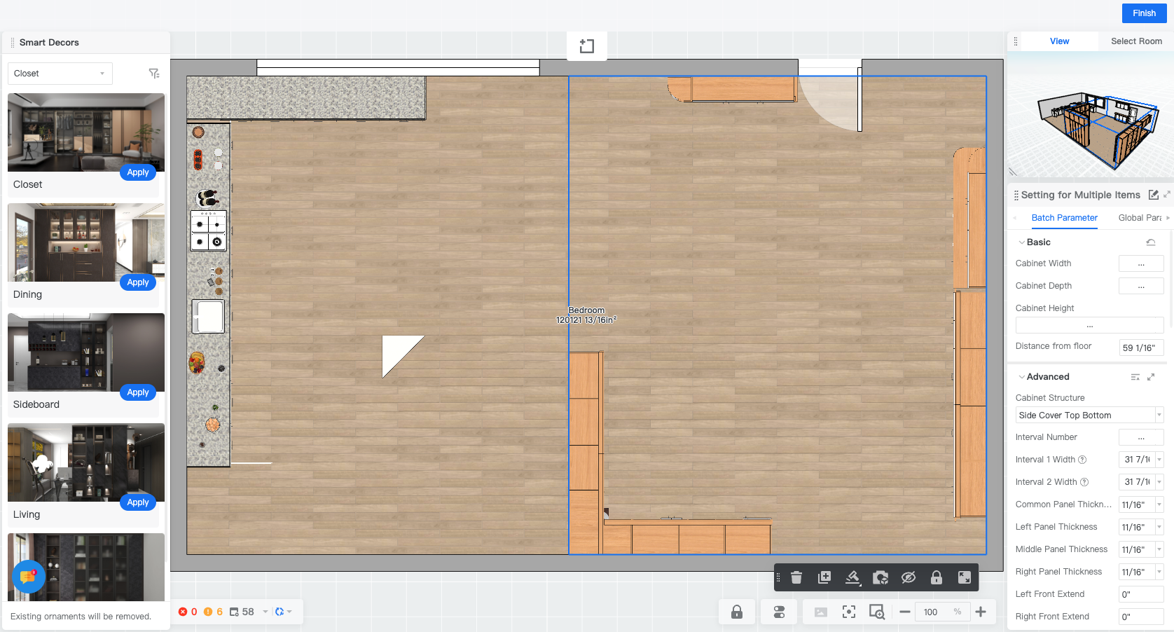 One-click to add decorations within the scene, supporting multiple kitchen, bathroom, and closet templates.