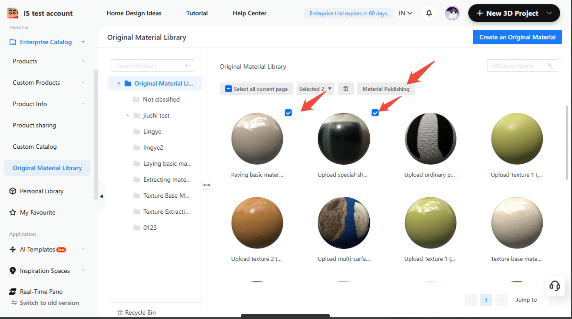 After extraction is complete, you can enter the Original Material Catalog, find the corresponding original material, and publish it to the required industry lines.