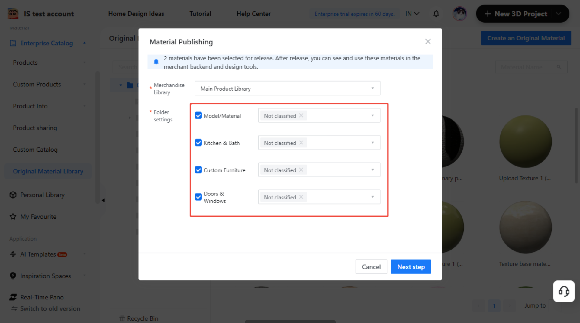 Now, you only need to upload the texture image to the Original Material Catalog, and you can simultaneously publish a single texture across various industry lines including furniture, flooring, K&B, and Closet. This greatly reduces the time and effort required for material maintenance.