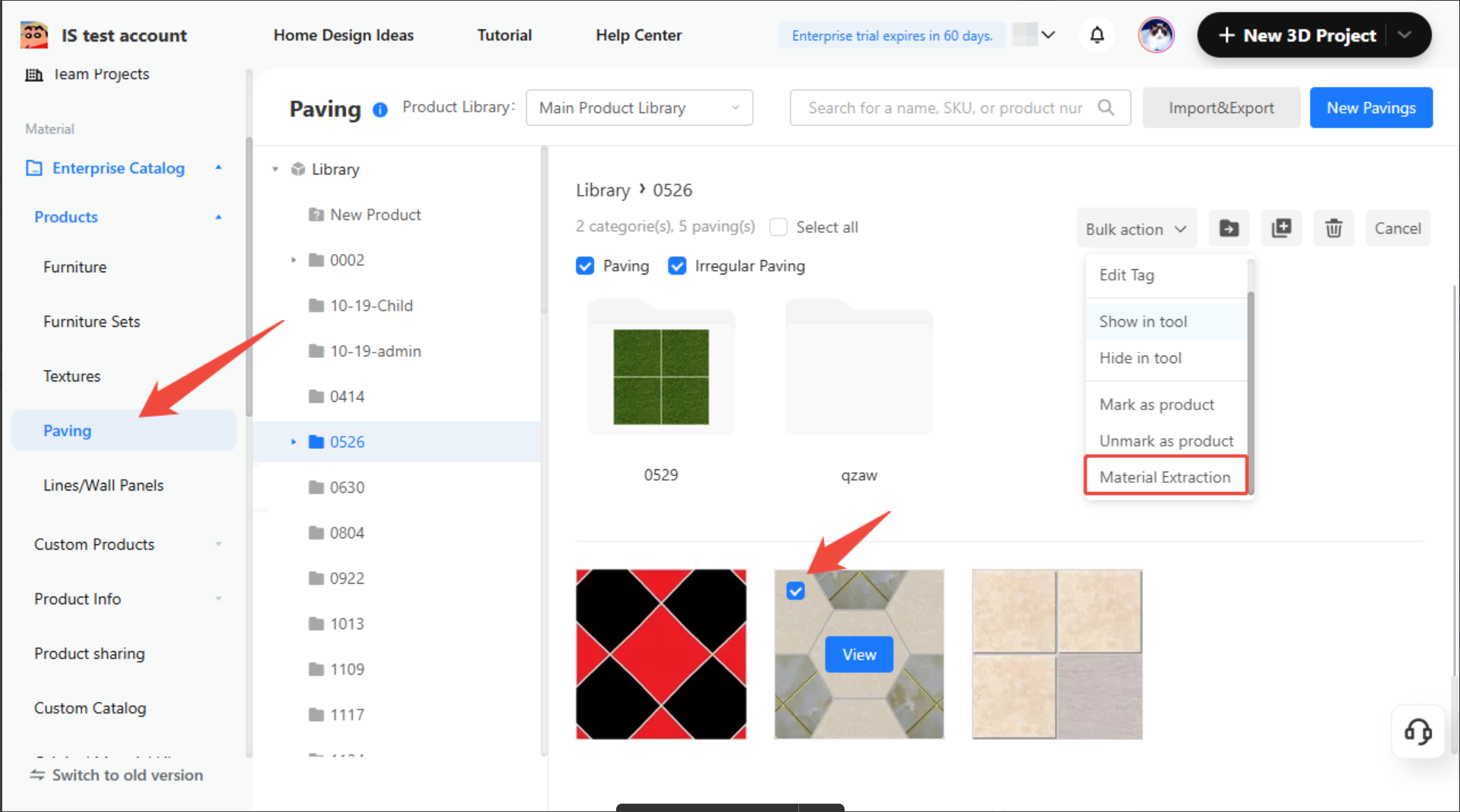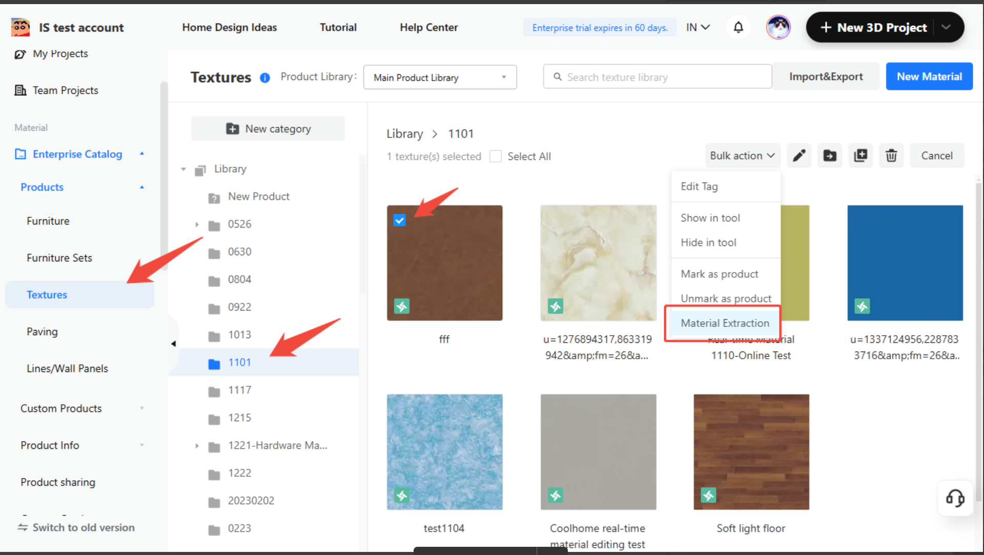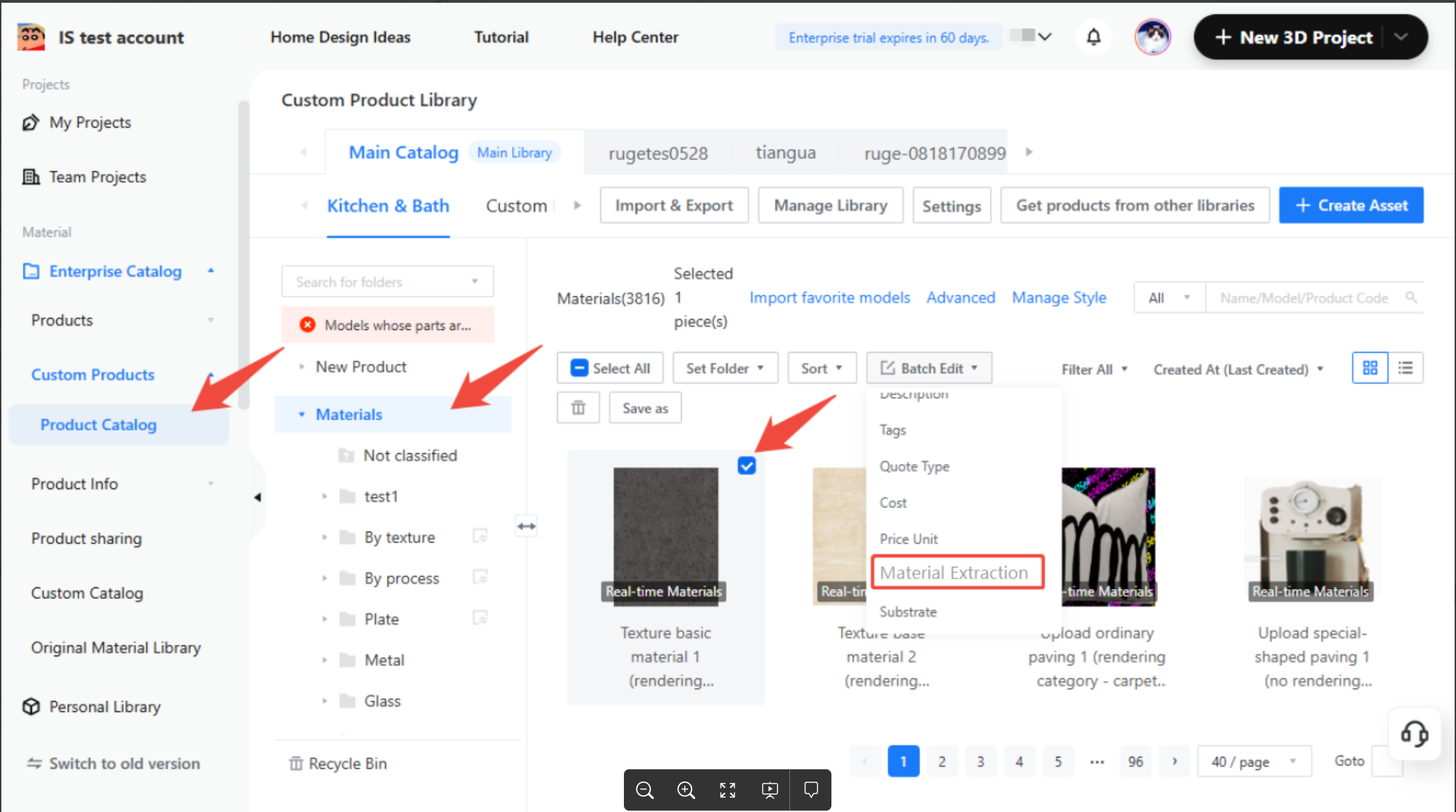 From any industry line in your enterprise library, choose one or more existing materials. Click on bulk operations and select “Material Extraction.”