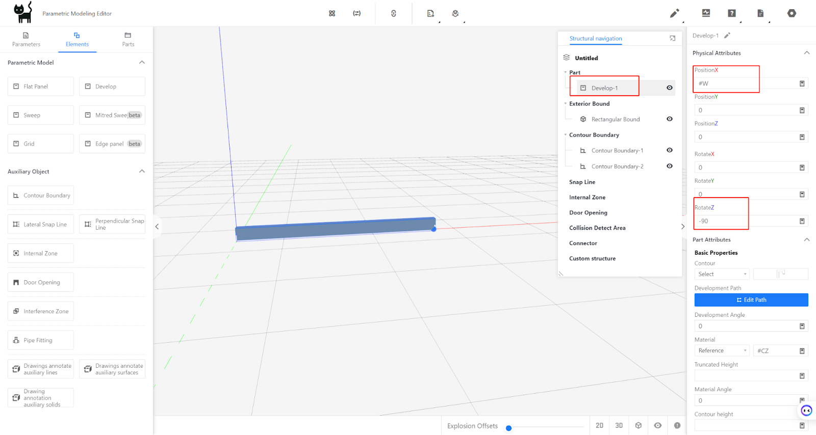 Position X: #W; Position Y: 0; Position Z: 0.