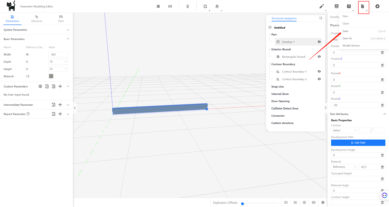 Model testing: Change the current width and material of the model to see if the changes are correct.