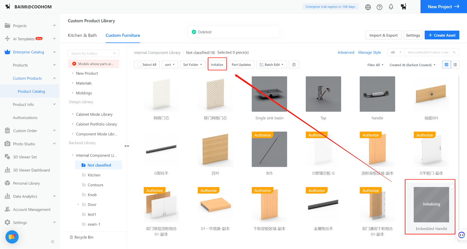 Select the model in the backend page, and choose to Initialize it.