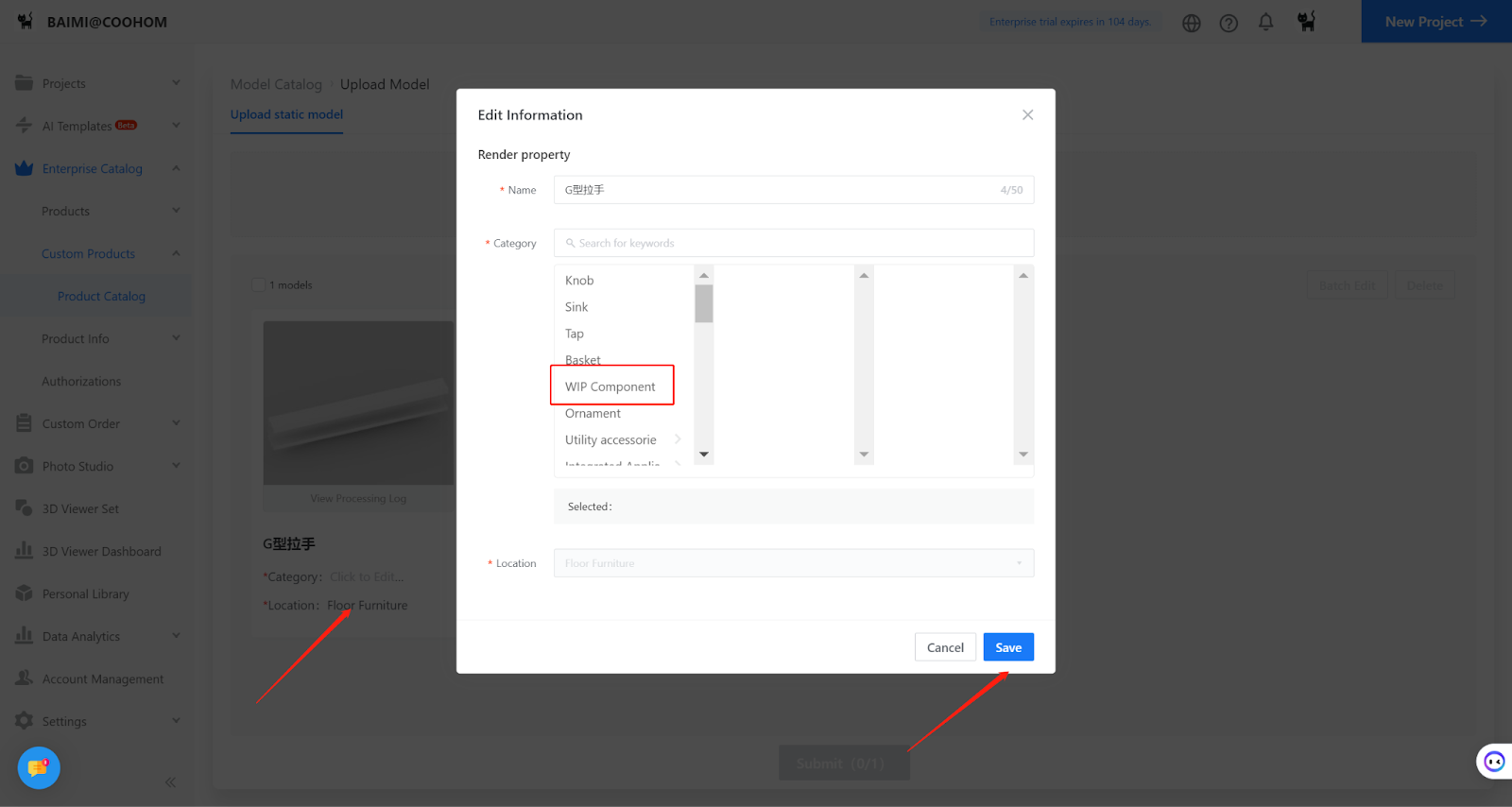 Upload the 3D handle to the semi-finished products library for backup.