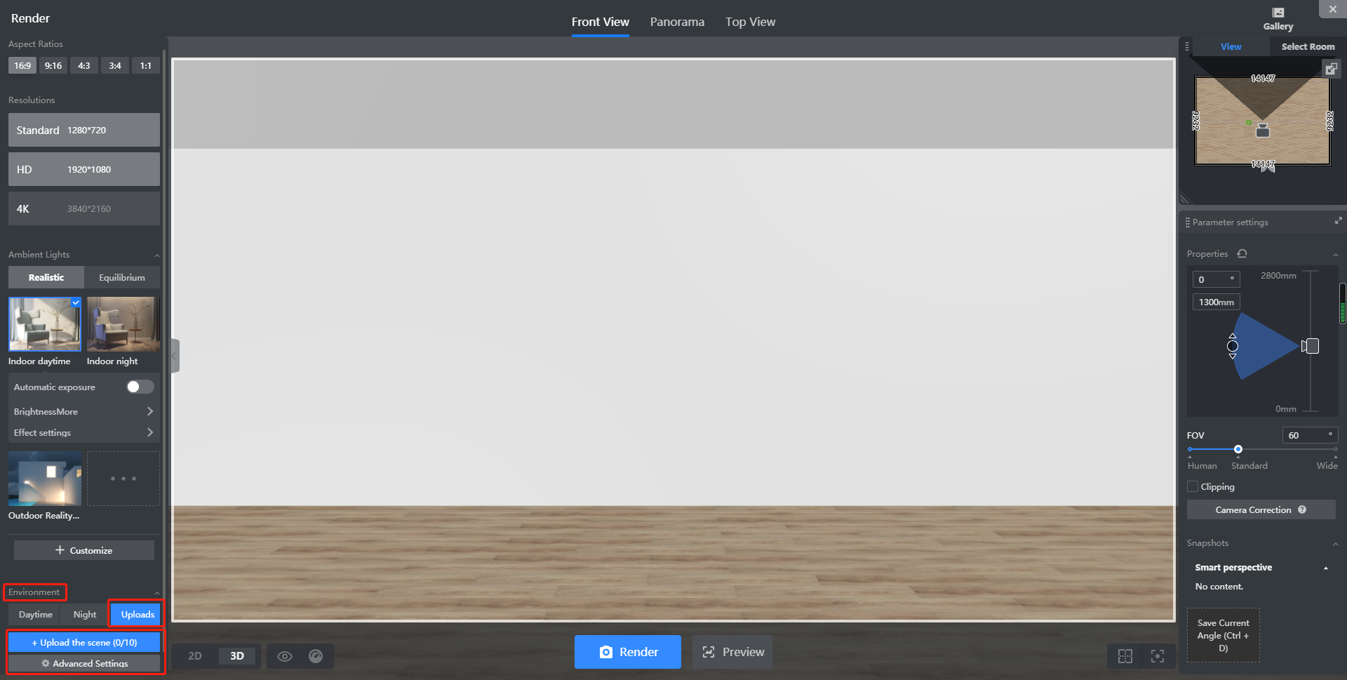 Now, Coohom supports uploading your own scene during rendering action.