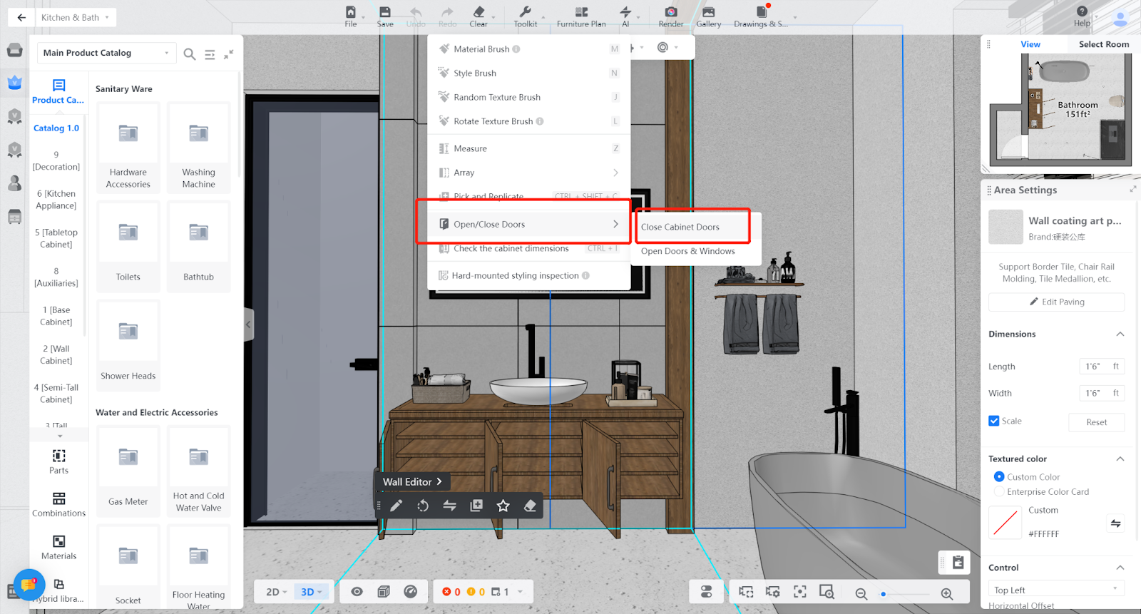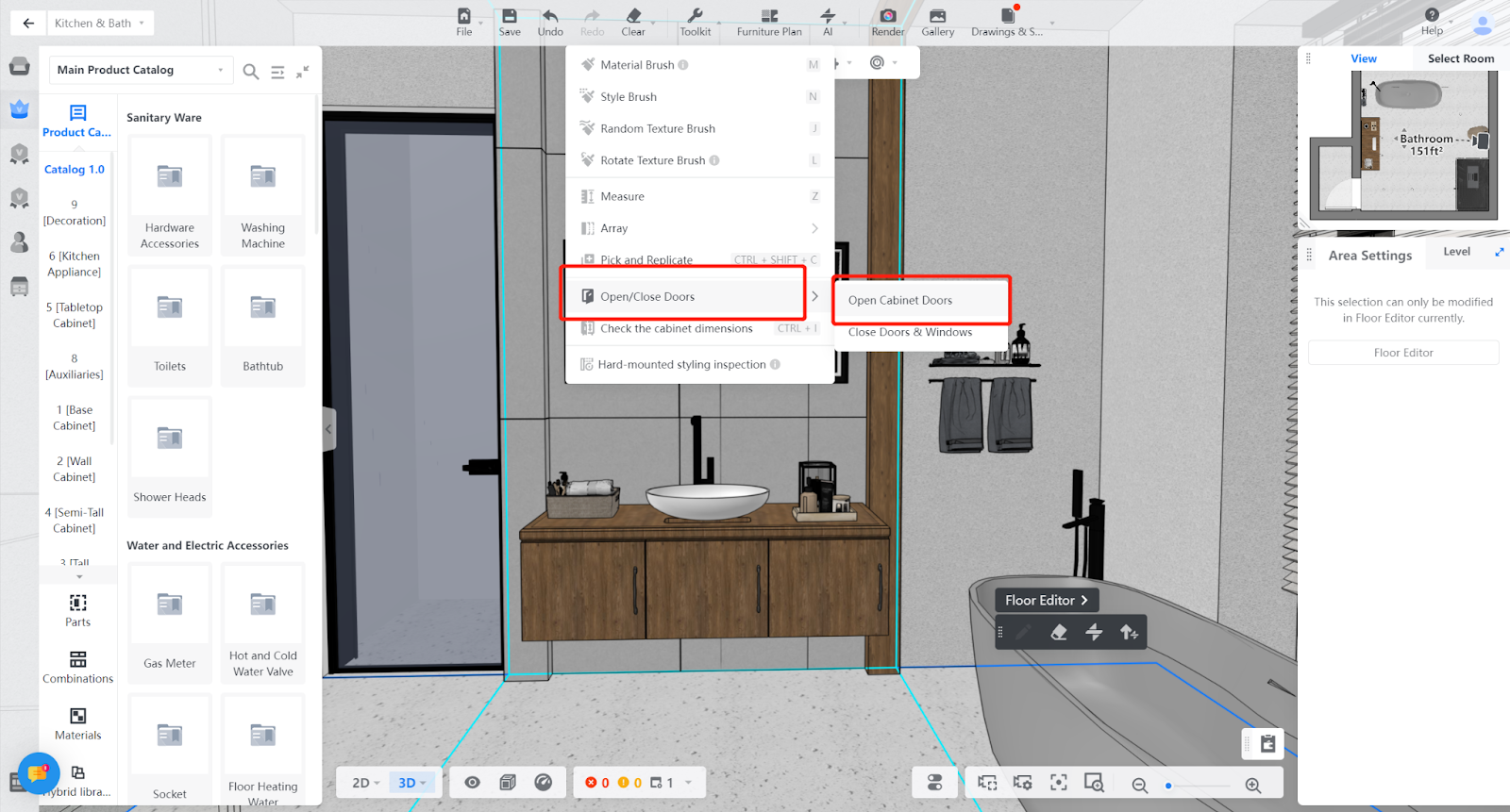 Step 2: Select "Open Cabinet Doors" to open all custom cabinet doors and display the interior structure in real-time, providing a clear and detailed view of the internal design.